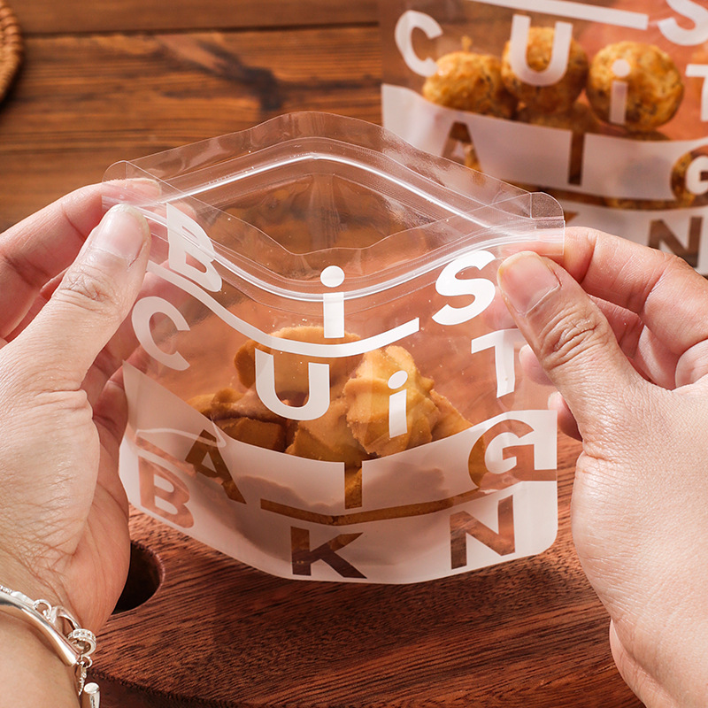 小零食糖果饼干雪花酥牛轧糖奶枣烘焙曲奇密封自立透明分装包装袋