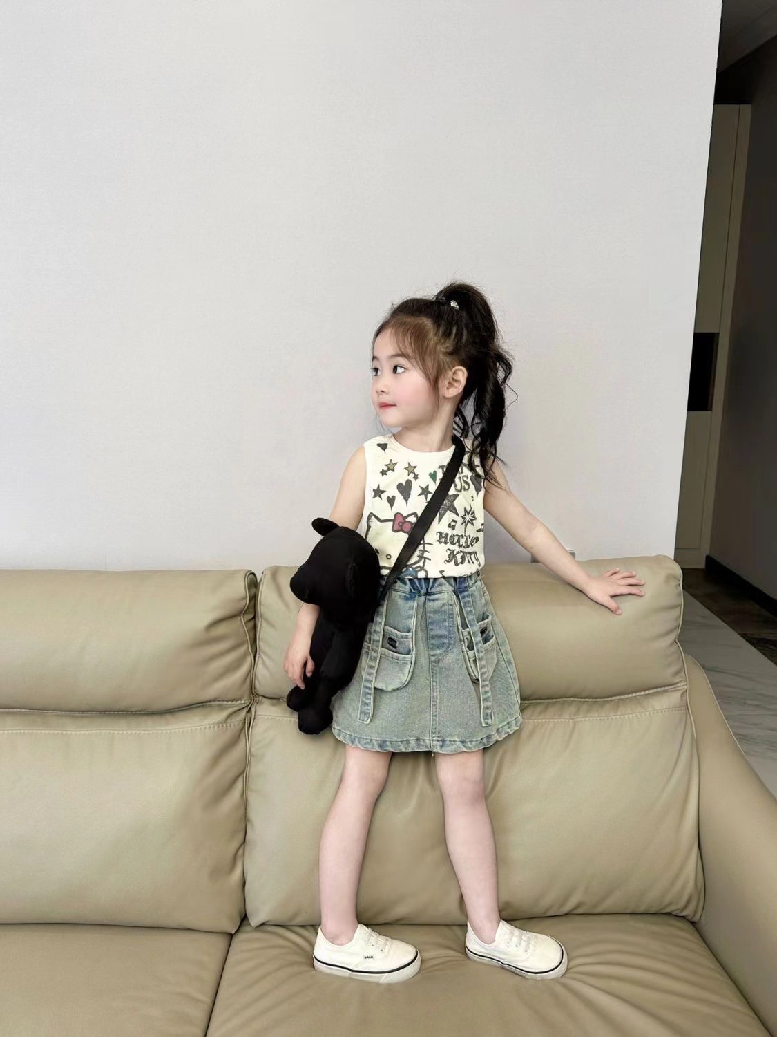 2432#春夏季女童牛仔裤裙儿童时髦洋气运动休闲工装裙宝宝网红衣
