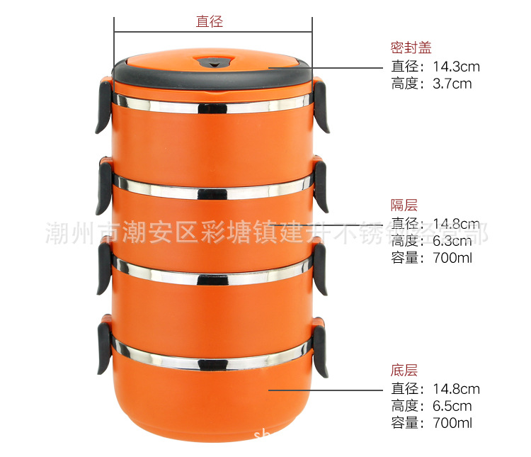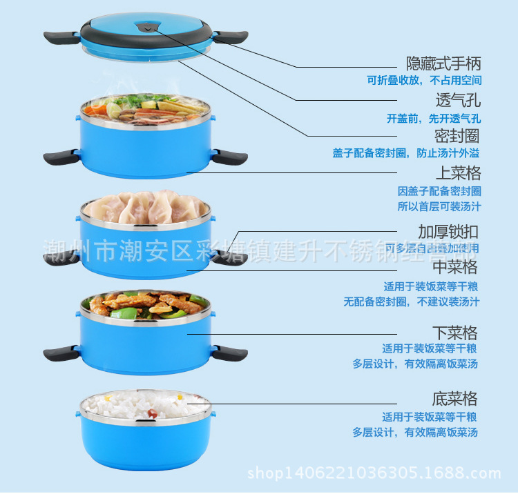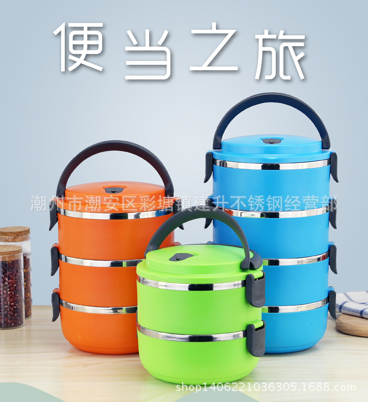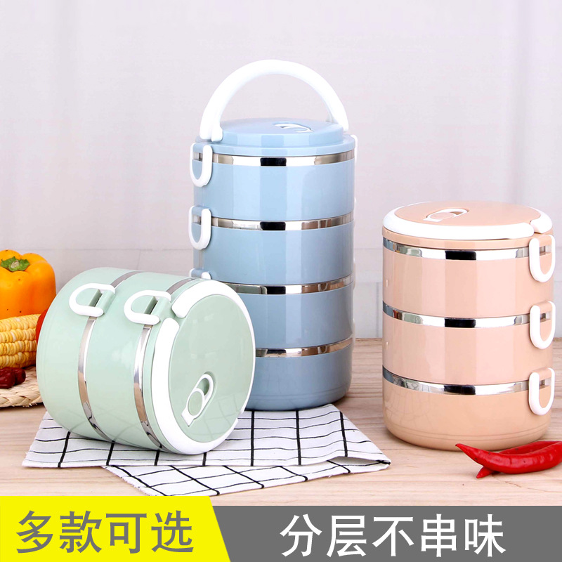 304不锈钢饭盒保温便当盒多层学生上班族食品级圆形保鲜餐盒批发