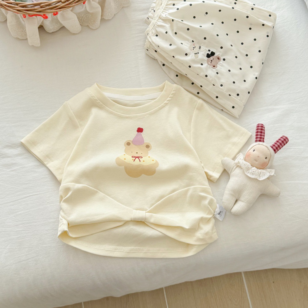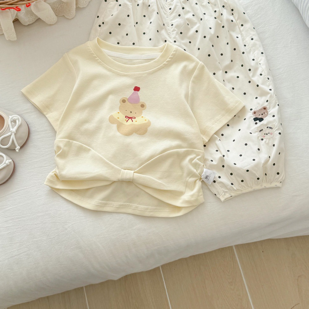 柠里女宝夏日套装全棉可爱短袖T+波点九分裤幼儿园小朋友舒适穿搭