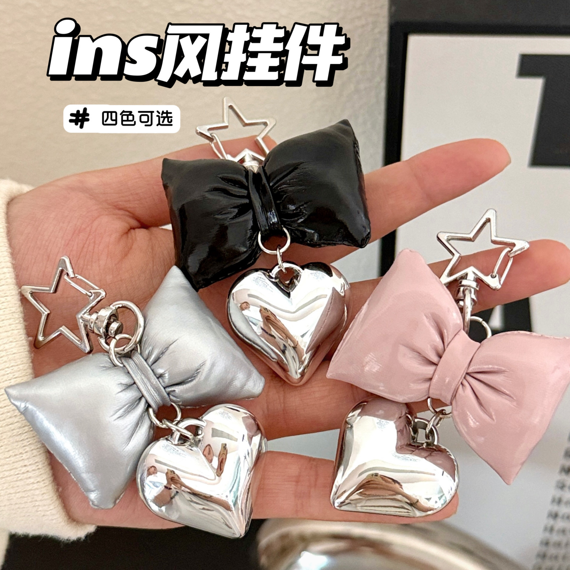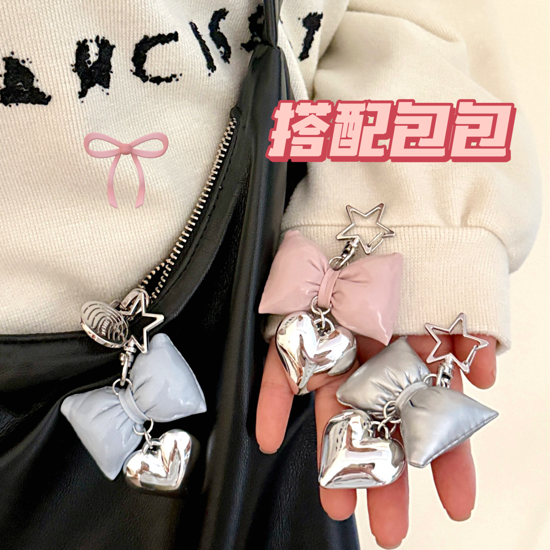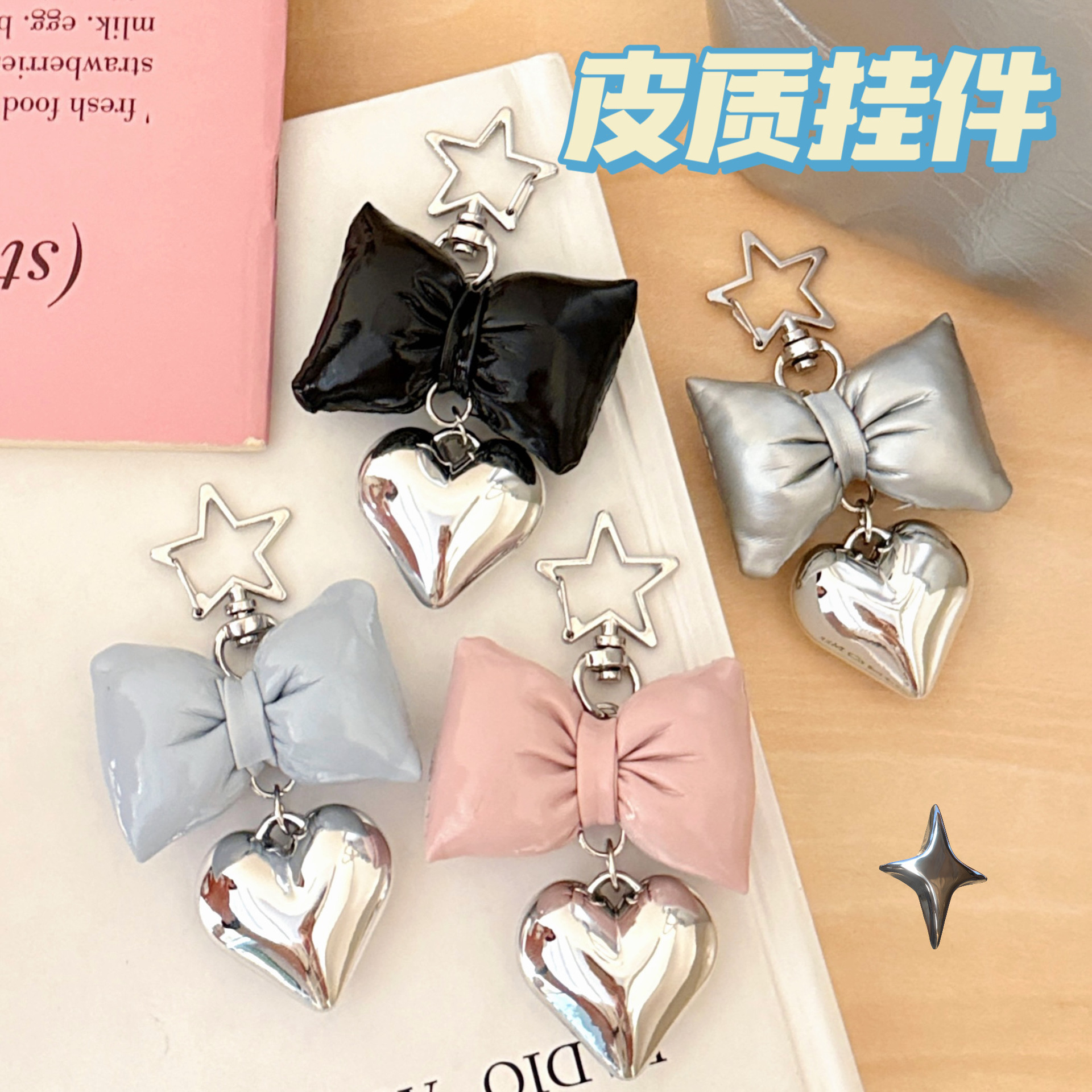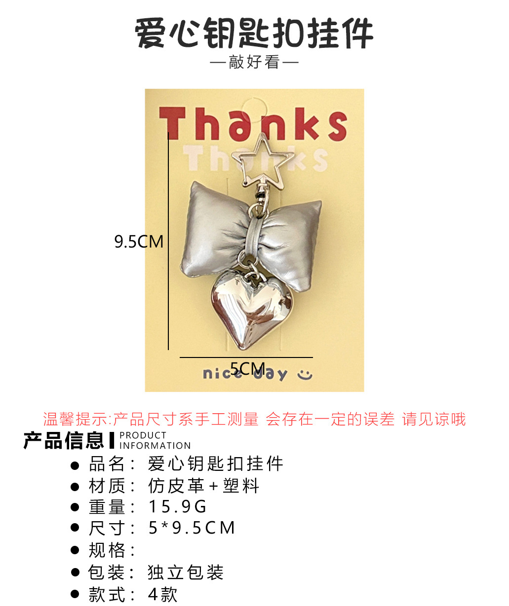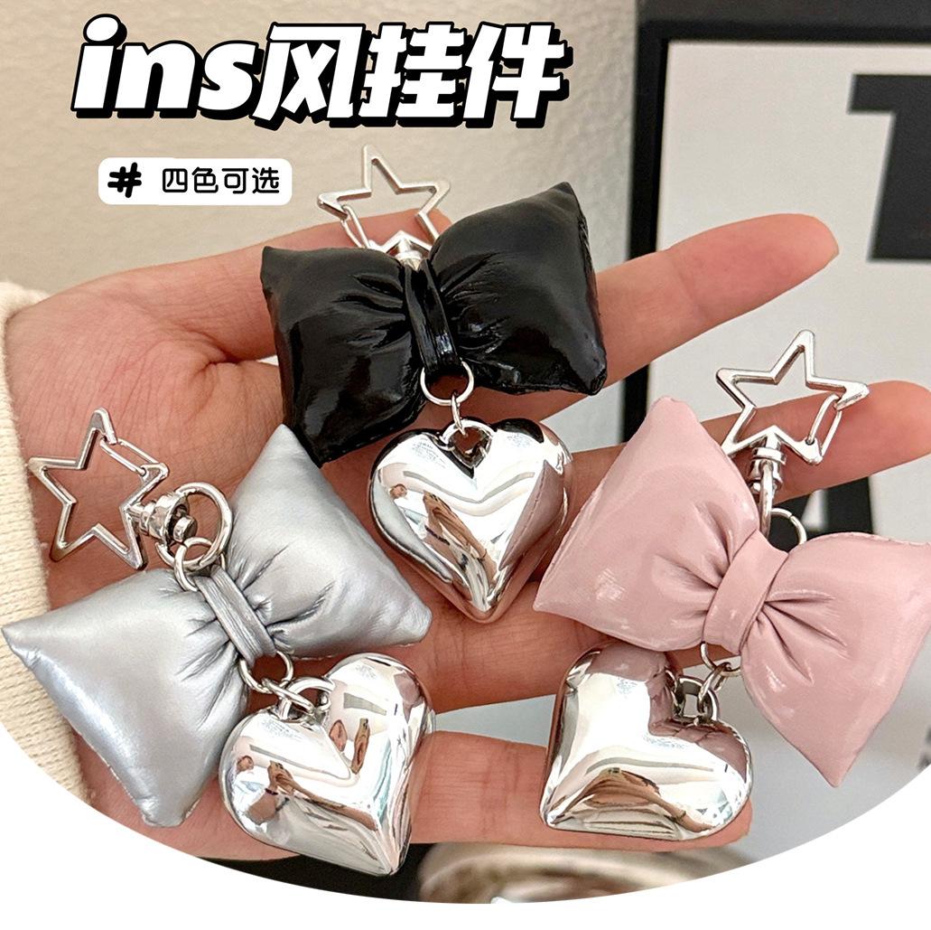 ins风仿皮革蝴蝶结爱心挂件少女高级感包包钥匙扣挂坠百搭小挂饰