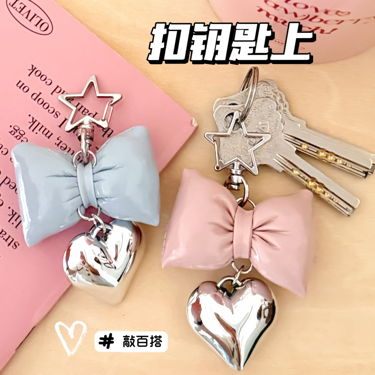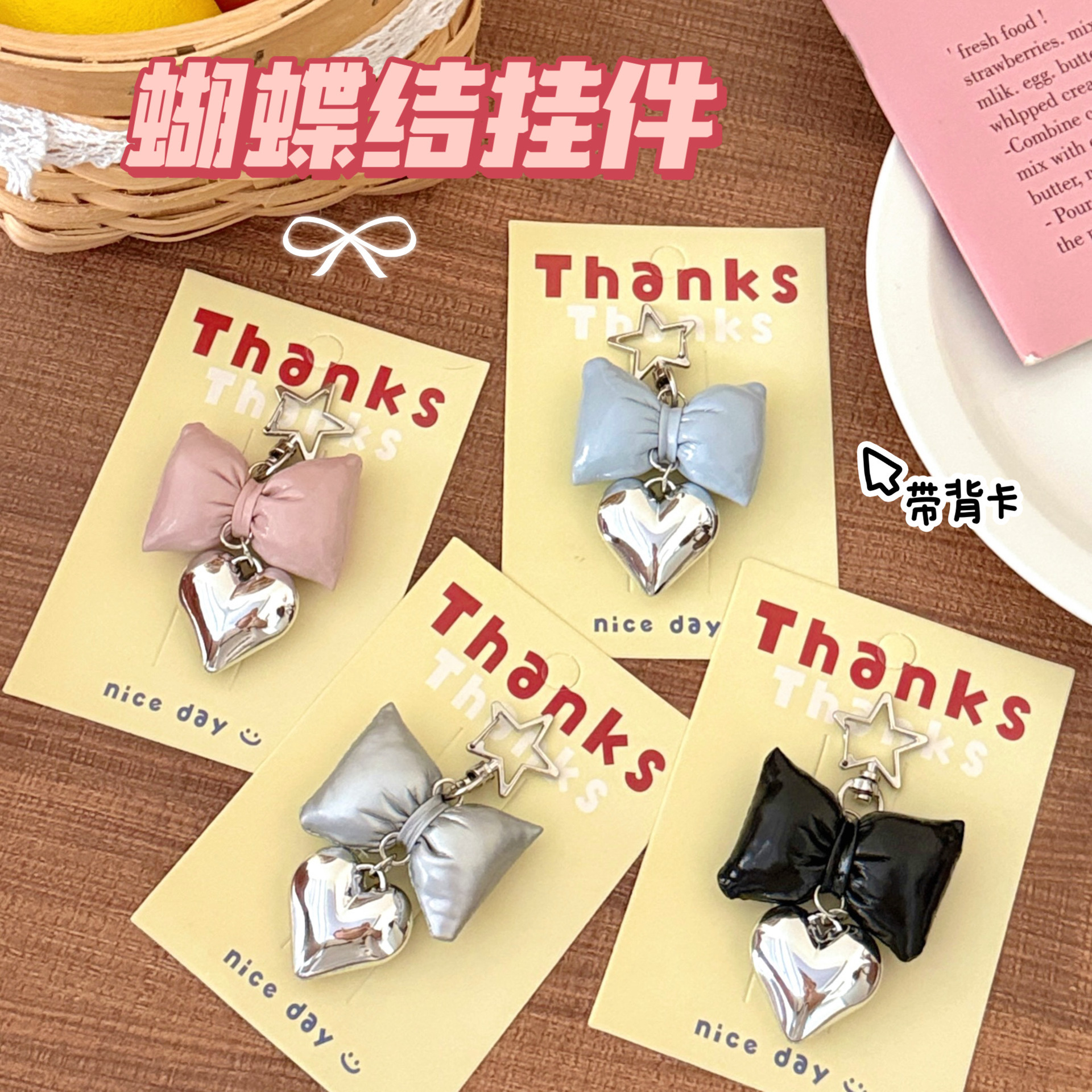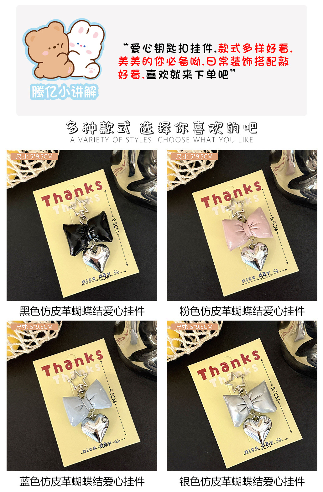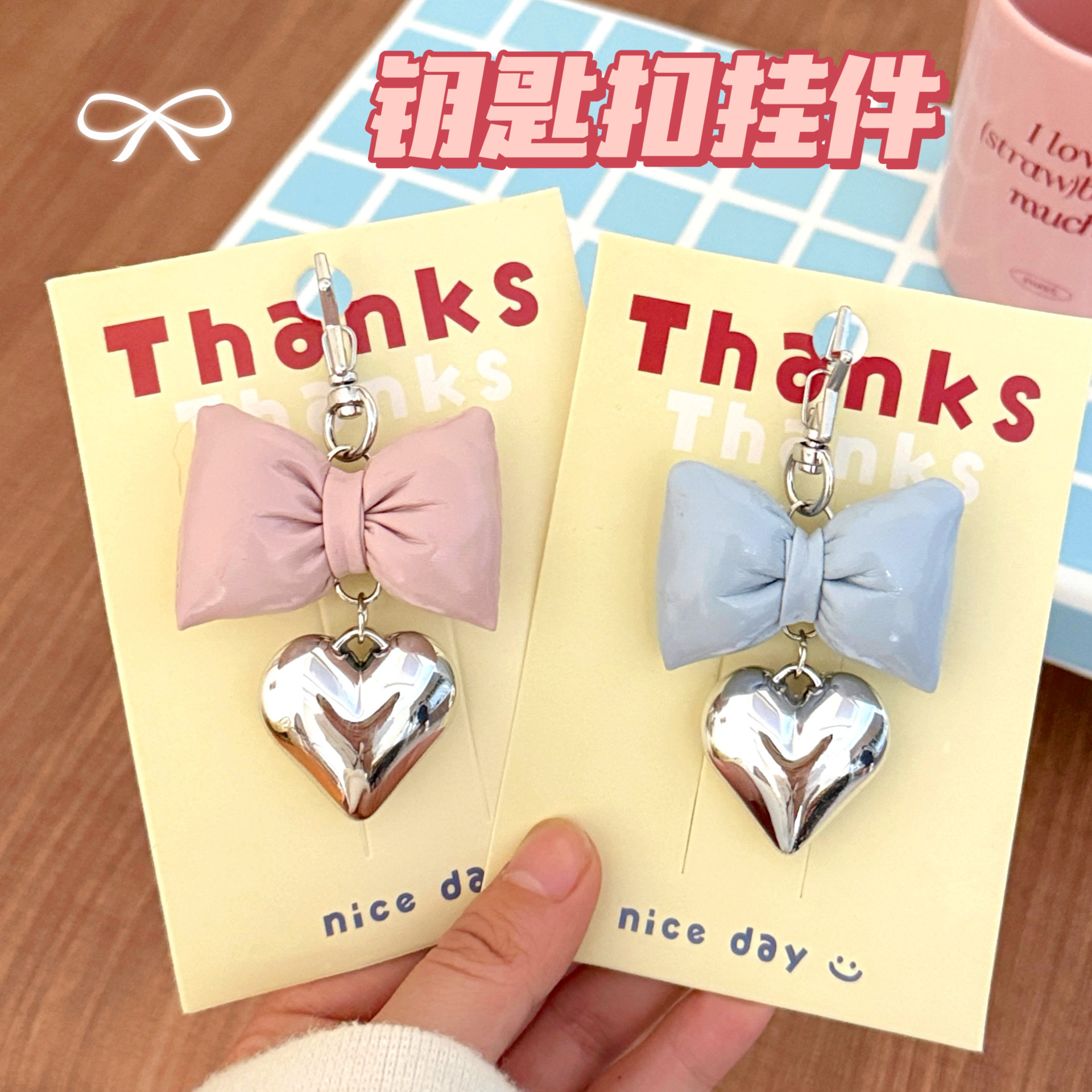 ins风仿皮革蝴蝶结爱心挂件少女高级感包包钥匙扣挂坠百搭小挂饰