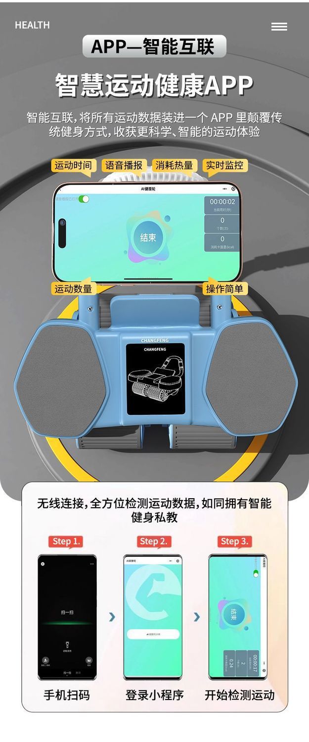 全新升级4轮健腹轮健腹轮撑式自动回弹收腹腹肌肚子男女健身器材