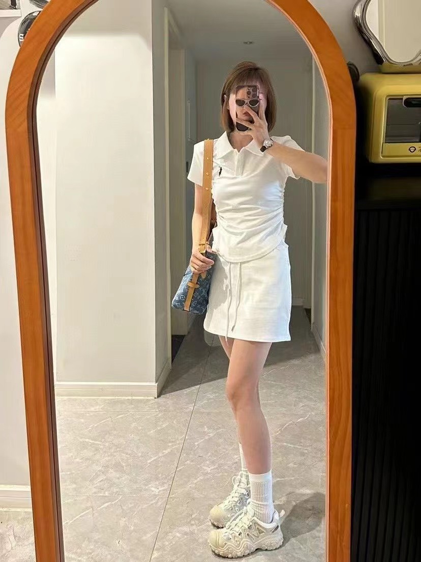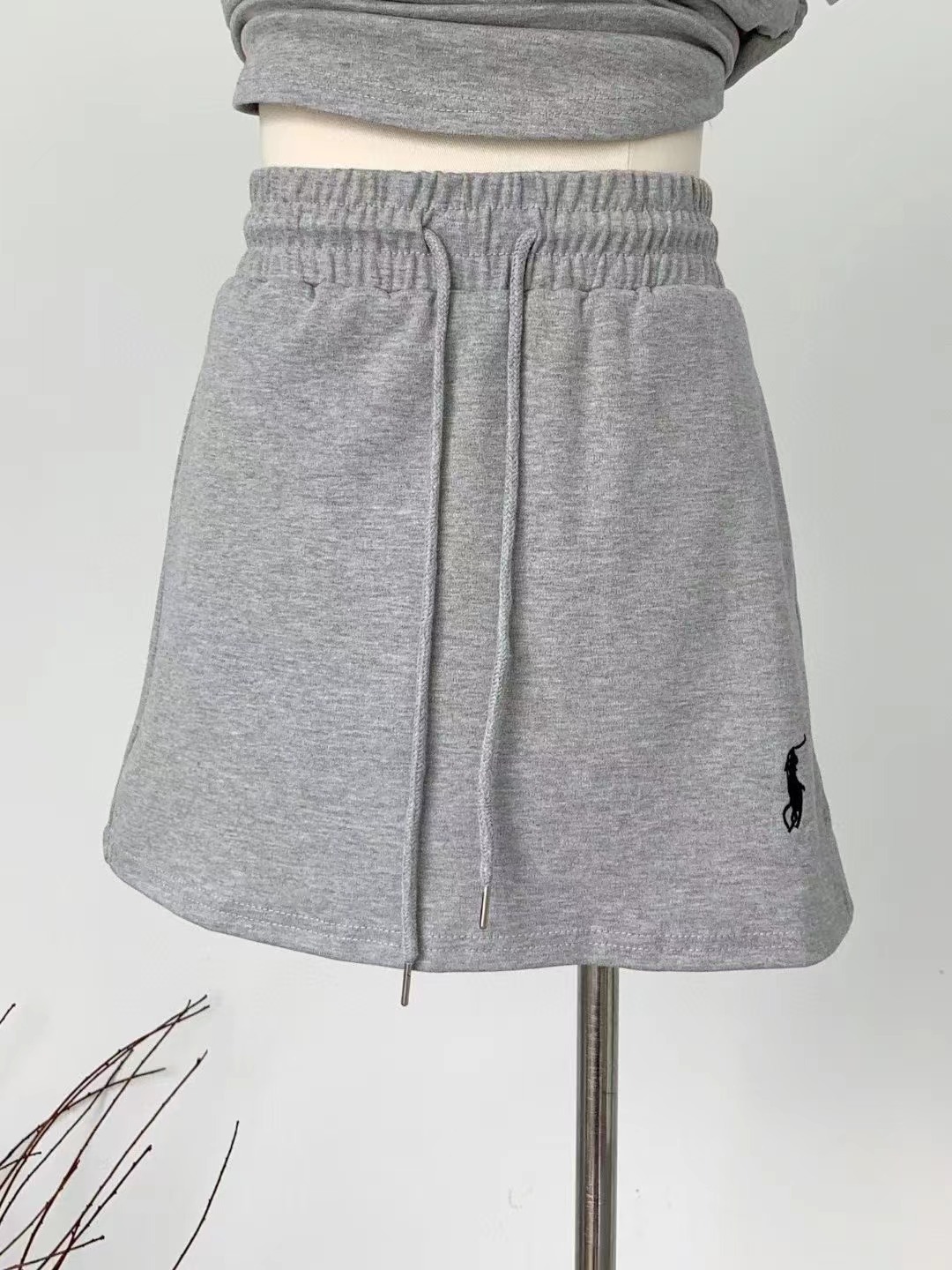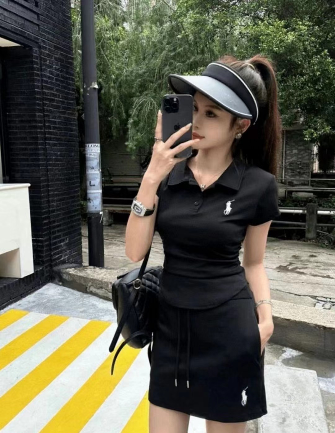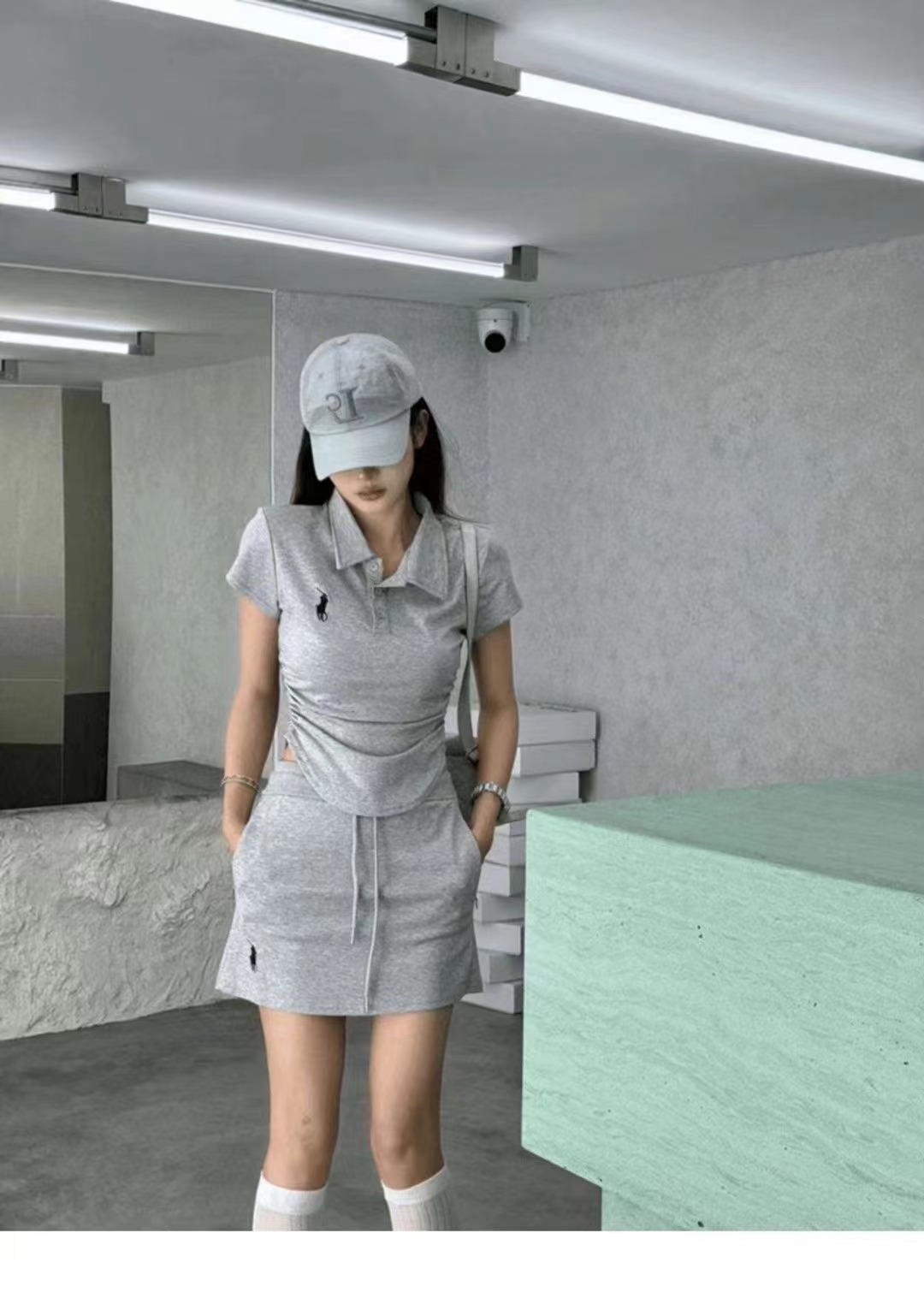 黑白灰三色可选刺绣小马运动休闲套装polo衫上衣T女+半身裙
