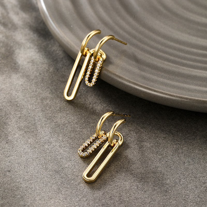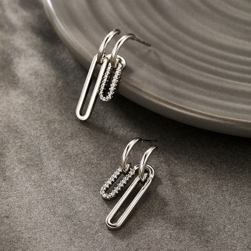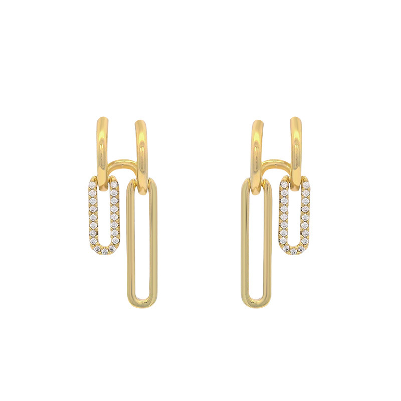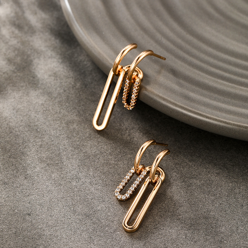 旭平首饰新款微镶锆石几何耳环小众设计个性欧美风时尚耳饰批发女