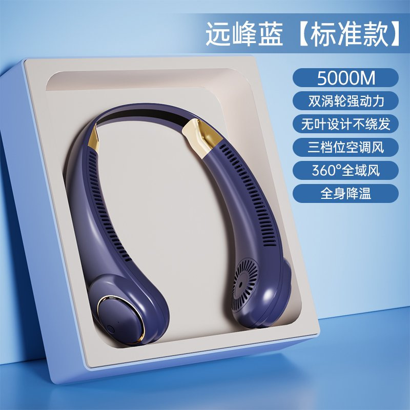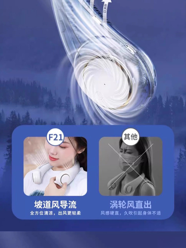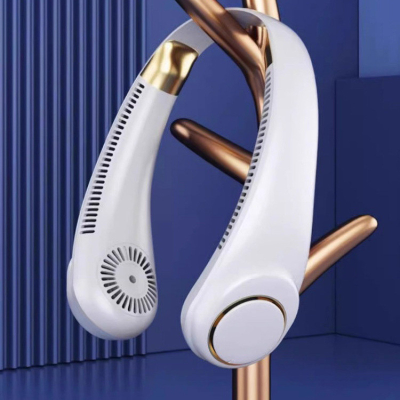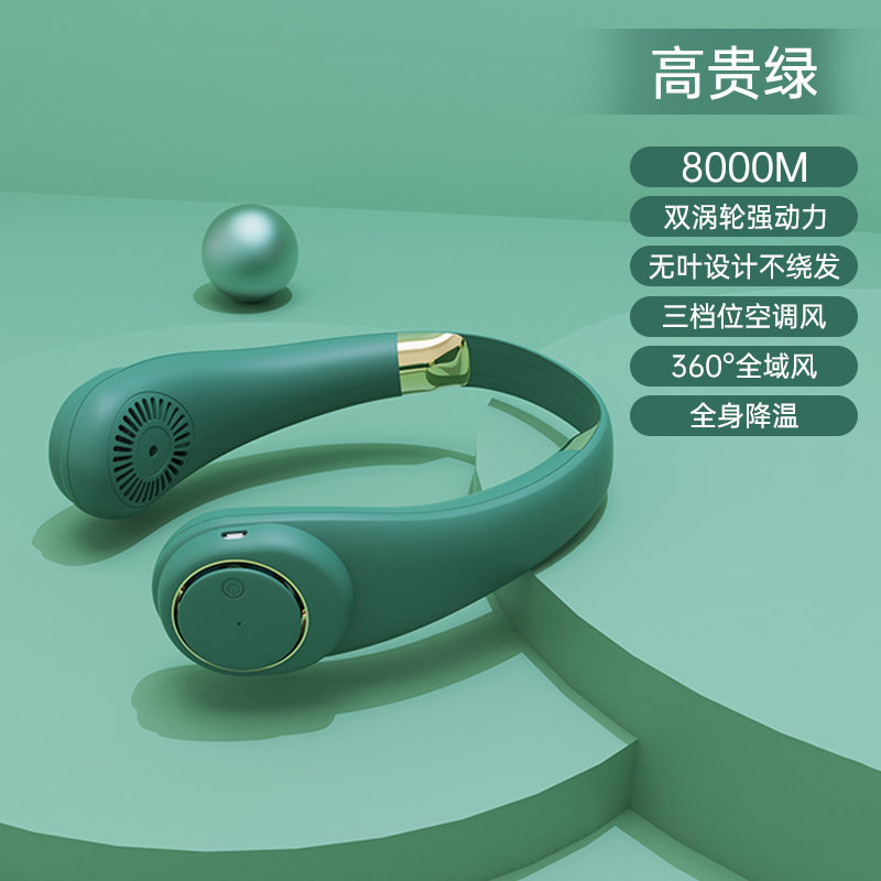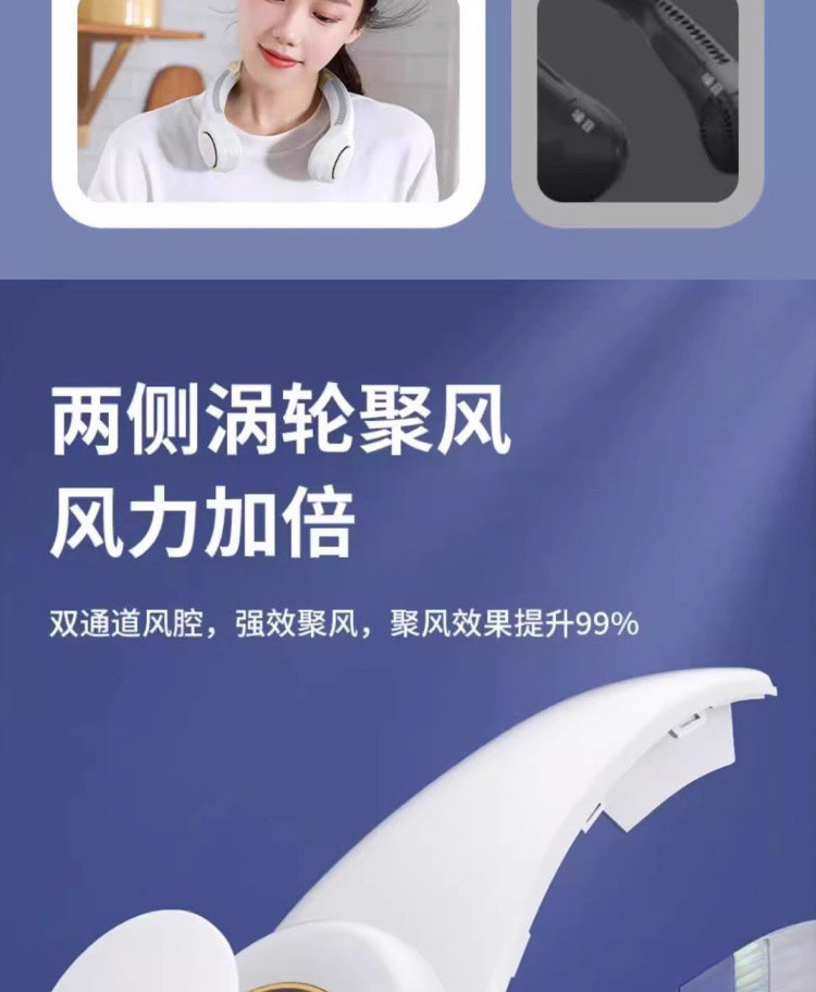 新款usb充电挂脖风扇便携式大风力静音电风扇制冷懒人挂脖子无叶