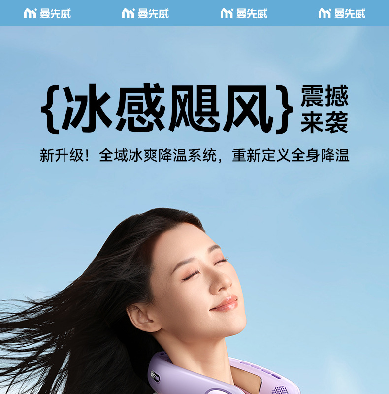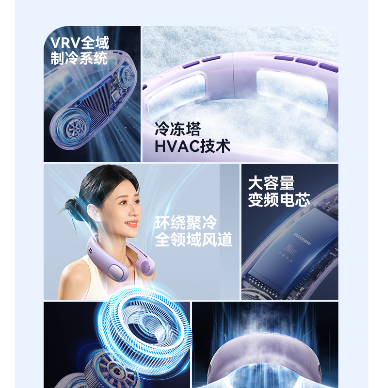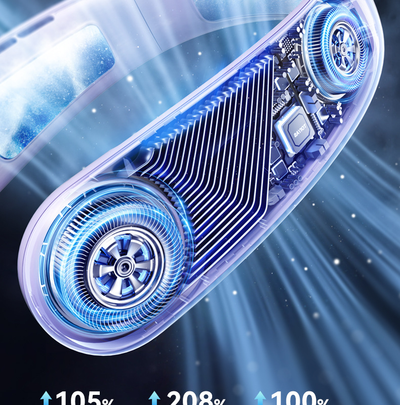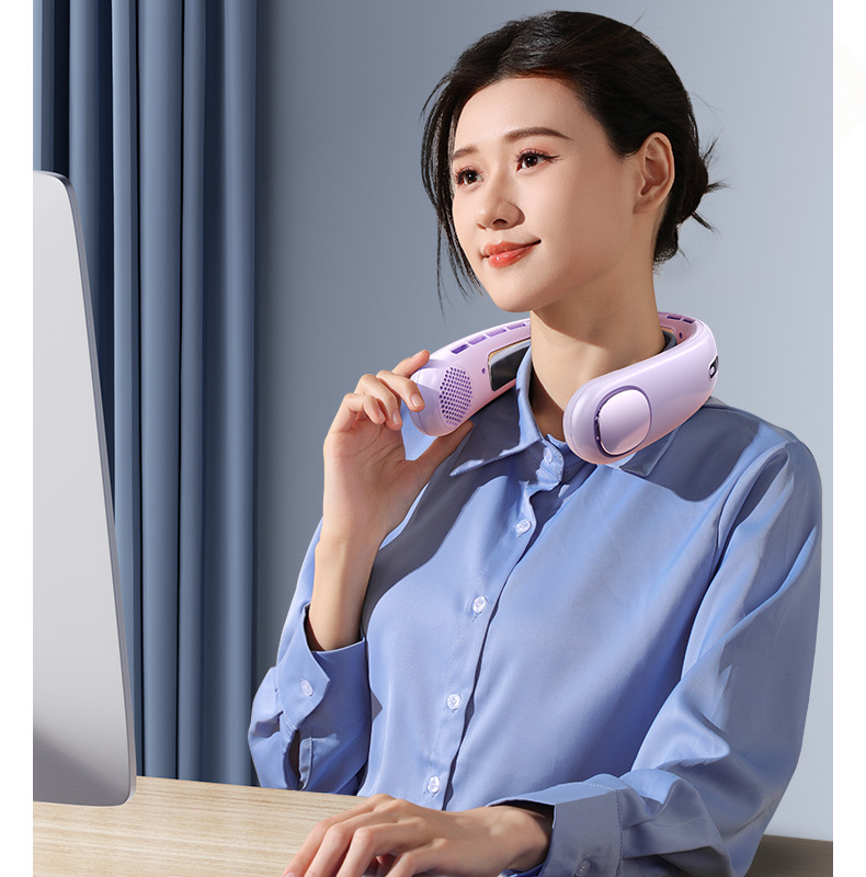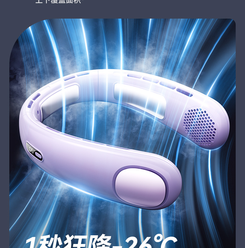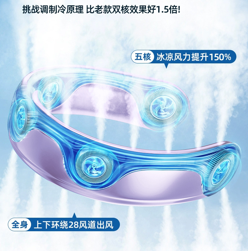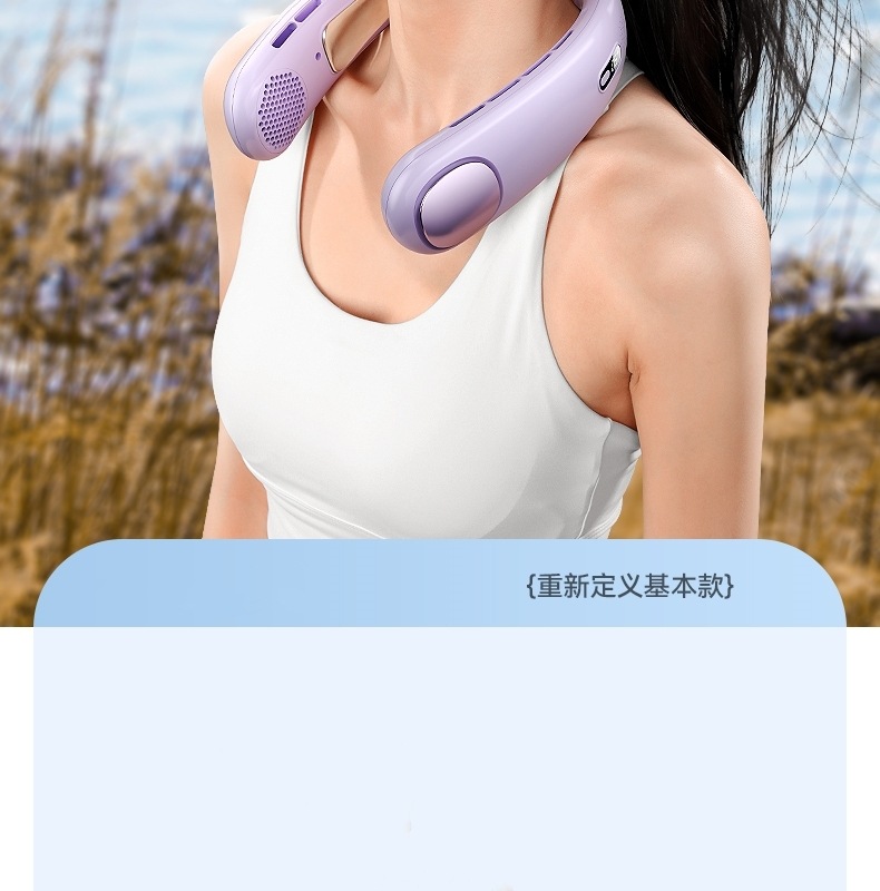 挂脖风扇五档无叶风扇制冷大风力懒人便携式充电超长续航挂脖风扇