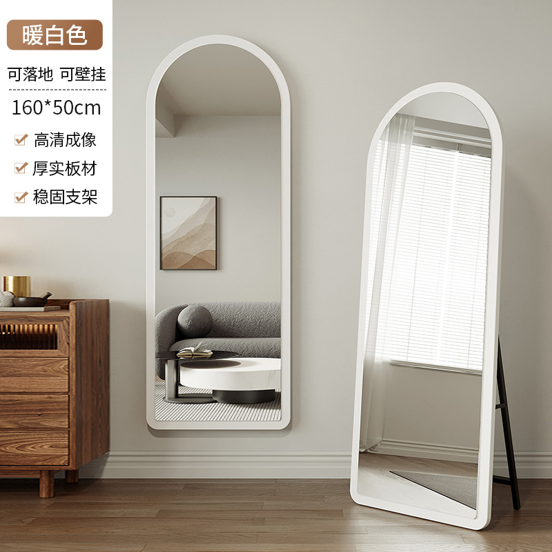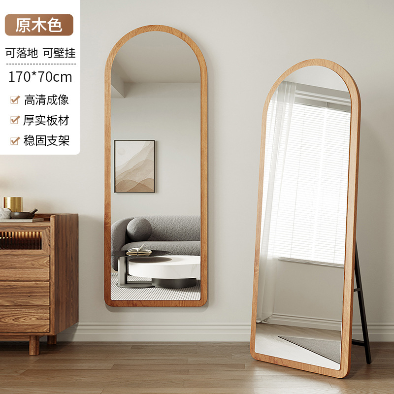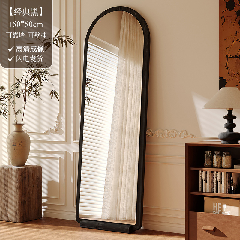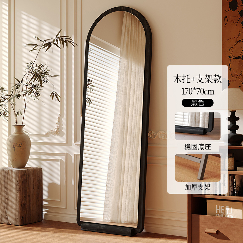 法式全身镜落地镜可移动实木底座穿衣镜女生卧室试衣镜拱形全身镜