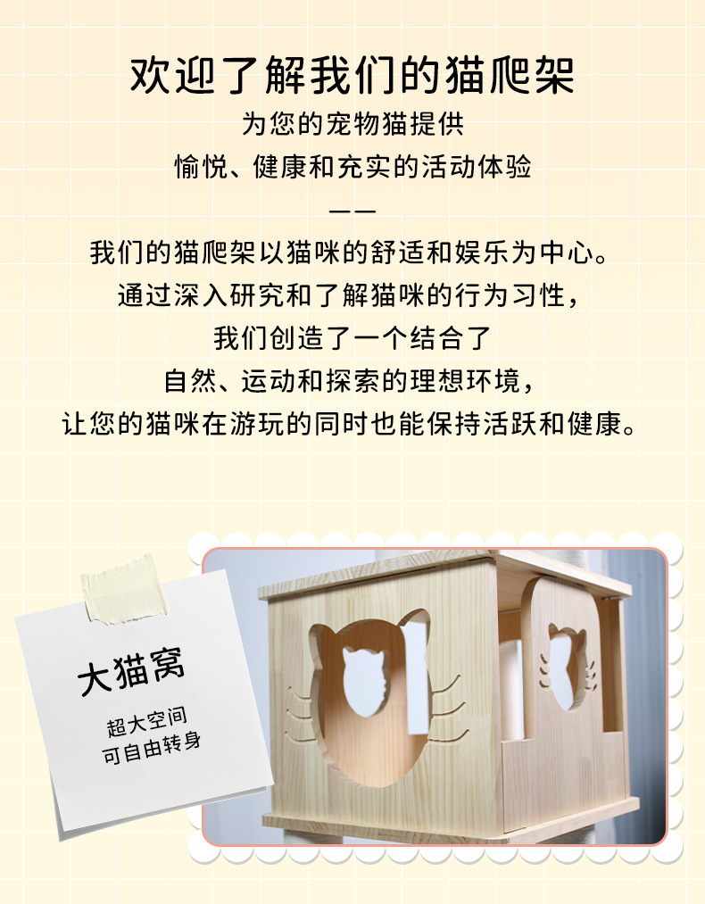 实木猫爬架猫咪猫架猫树猫爬架猫抓板工厂定制猫爬架实木CTS-008