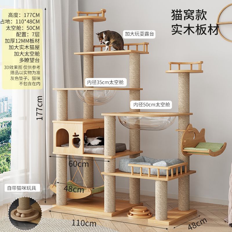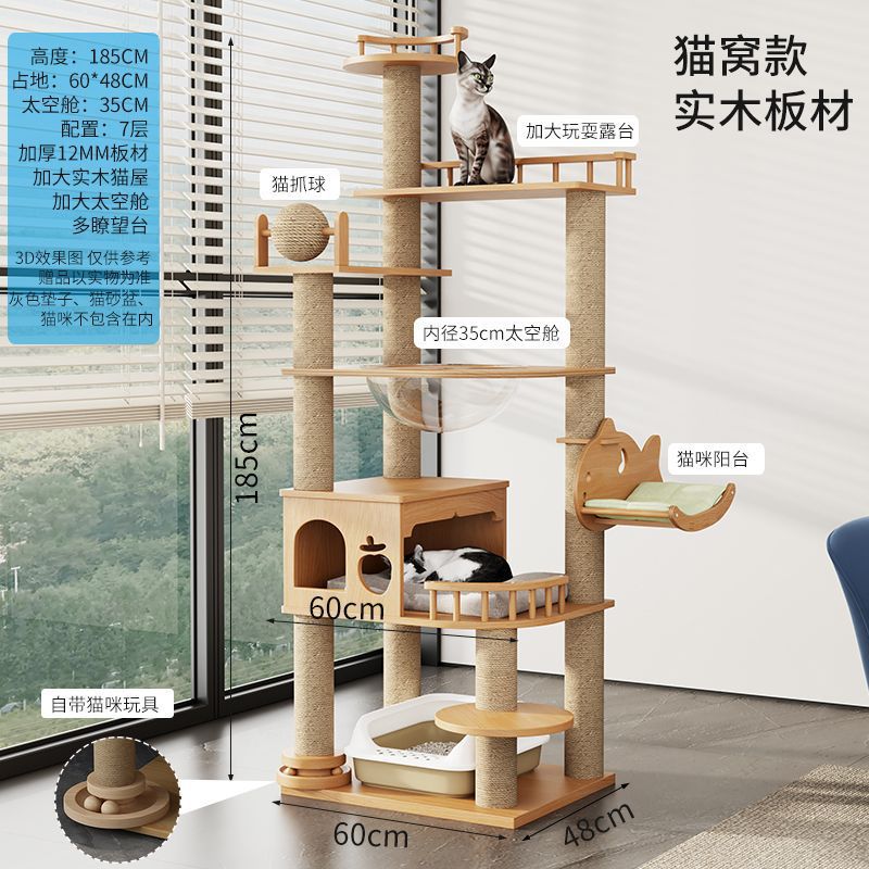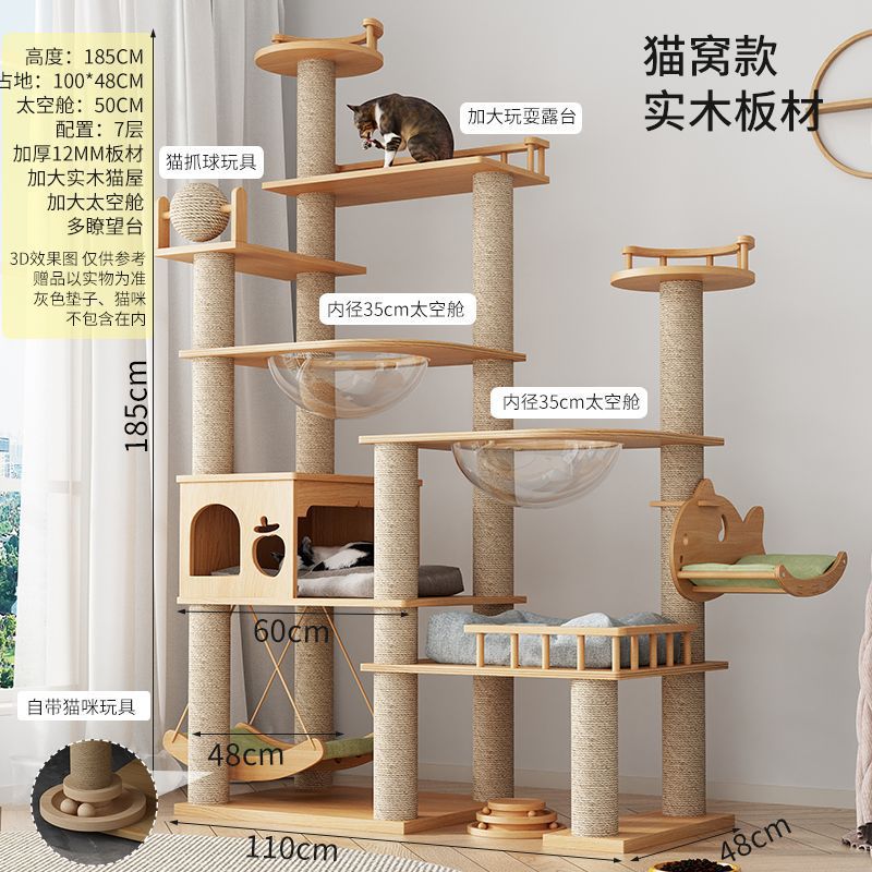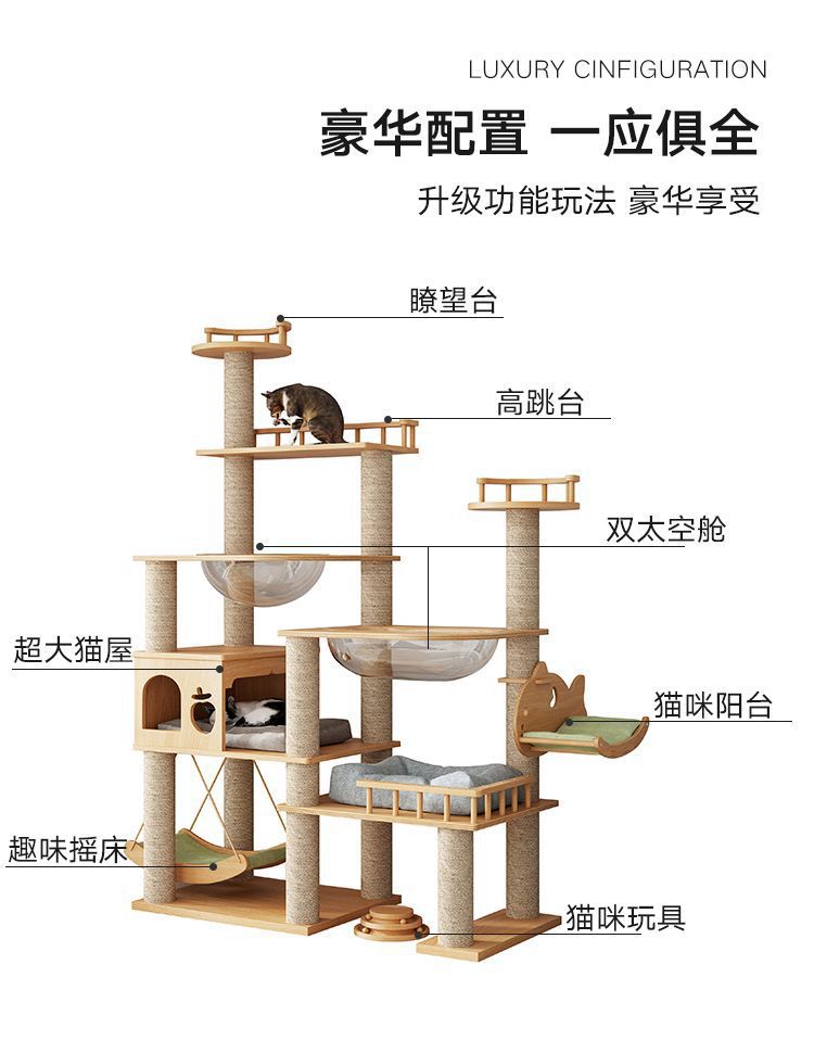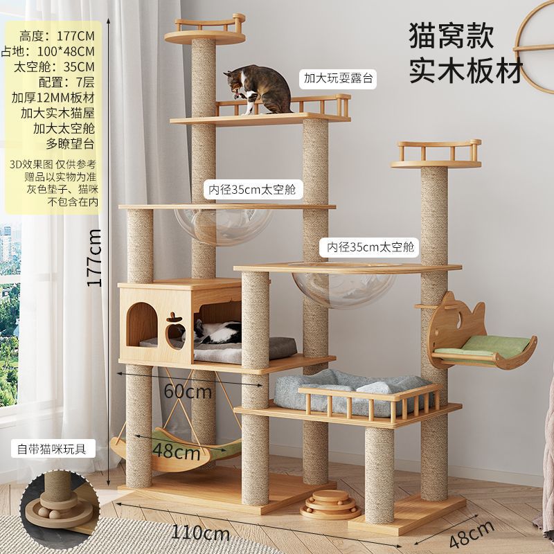 大型实木猫爬架一体四季通天大猫加大抓板太空舱肥猫玩具抓柱耐磨