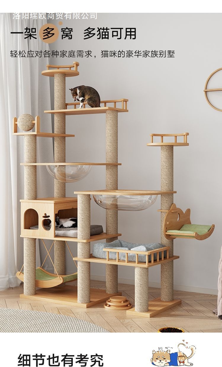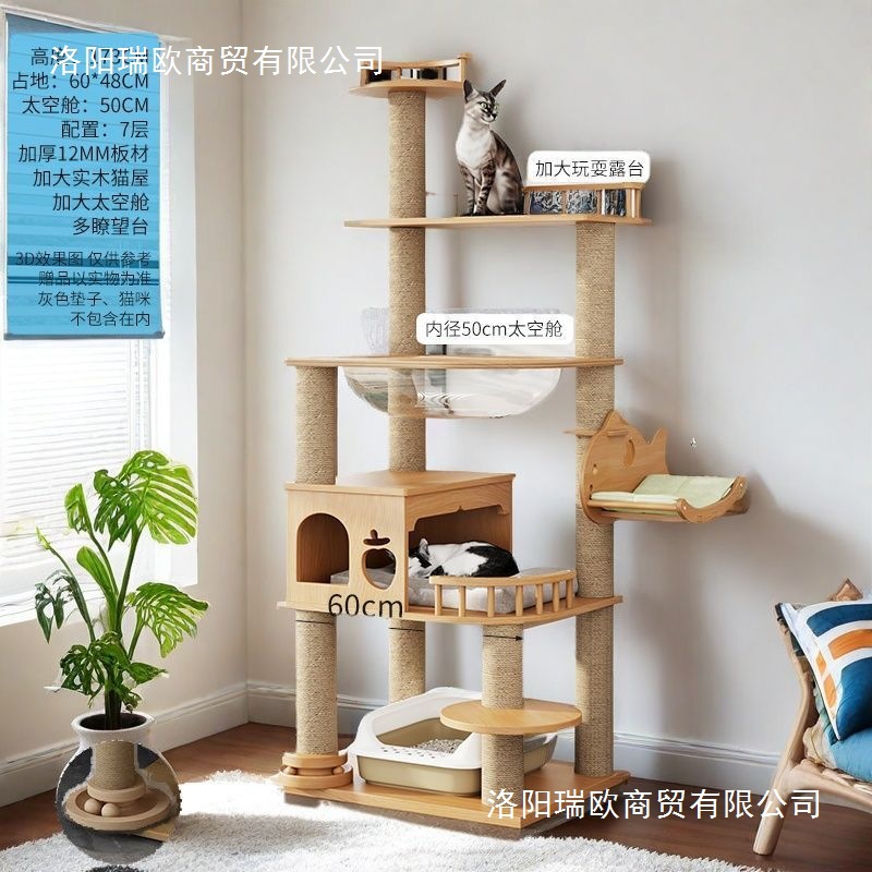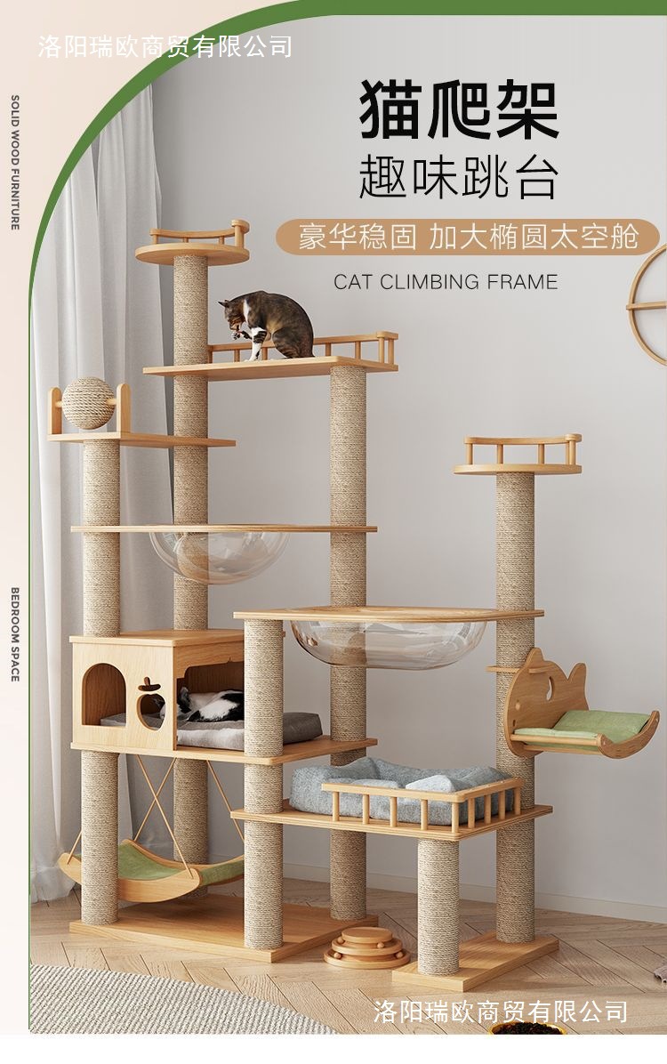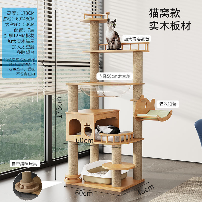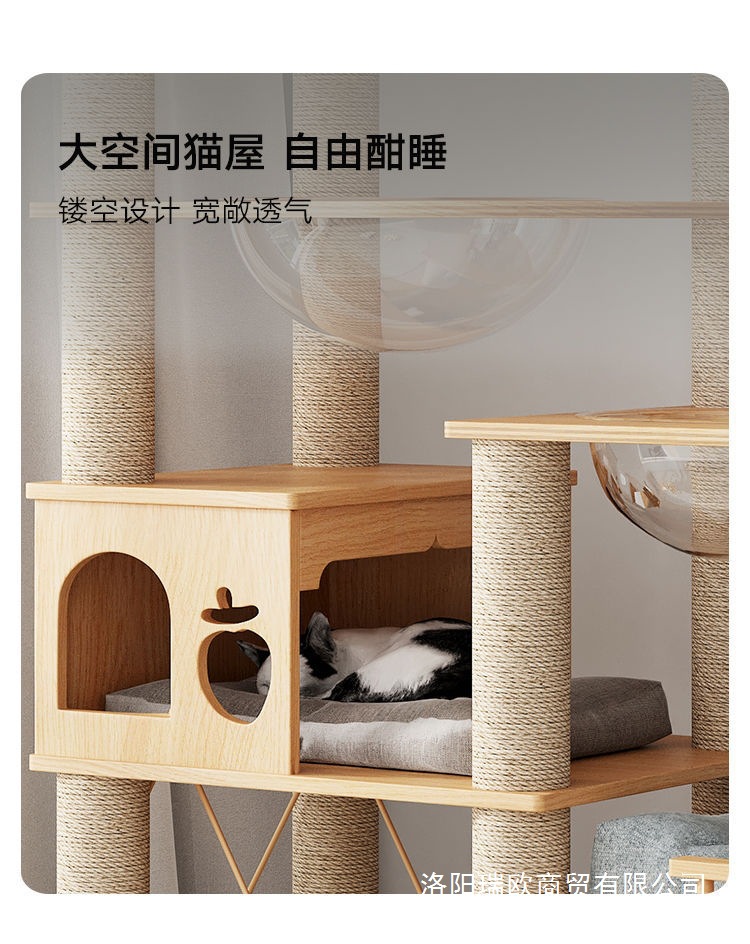 大型实木猫爬架一体四季通天大猫加大抓板太空舱肥猫玩具抓柱耐磨