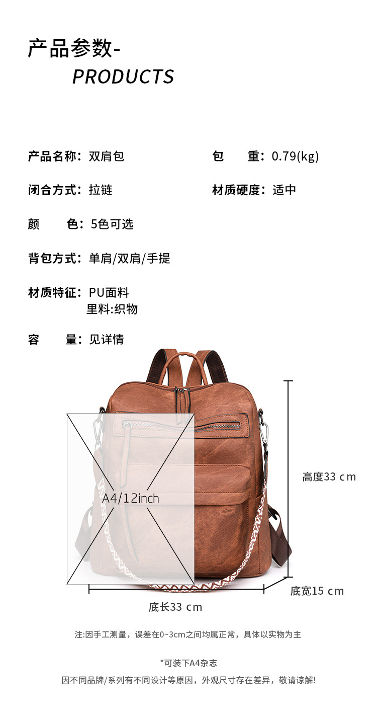 跨境backpack bags双肩包女PU软皮百搭大容量两用单肩包女士背包