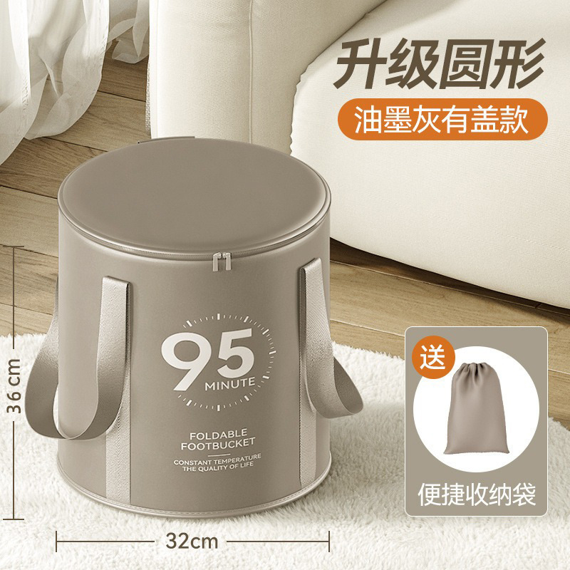 现货折叠泡脚桶过小腿家用便携保温深桶加厚卡通带盖足浴洗脚桶