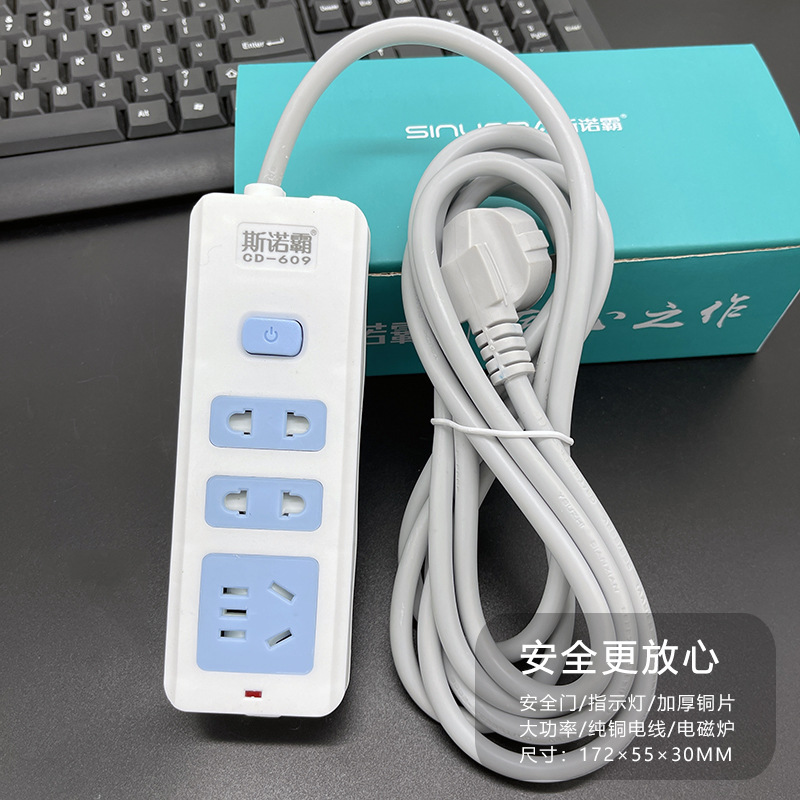 斯诺霸纯铜插座带线排插大功率2500W厚铜电磁炉插板 纯铜线2-10米