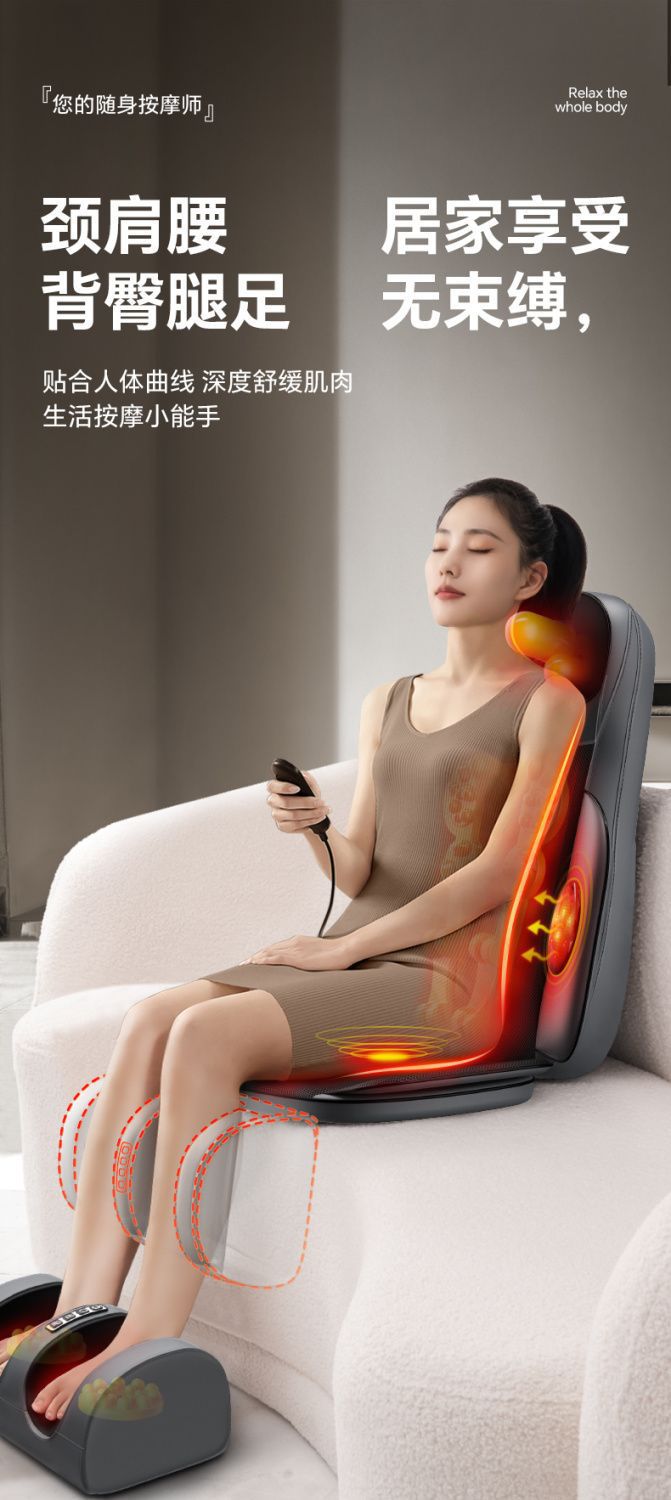 跨境家用全自动按摩靠垫颈椎腰背部按摩多功能肩颈揉捏小型按摩椅