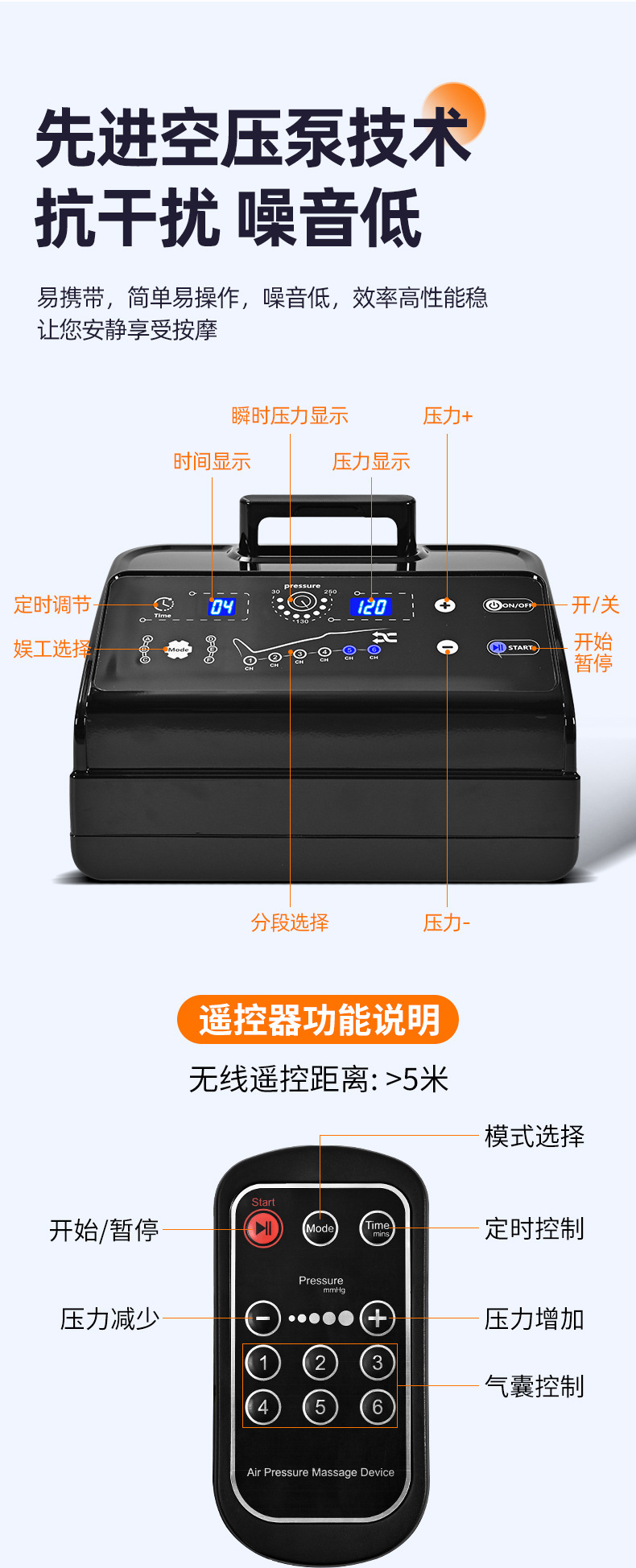 六腔空气波按摩仪气压腿压力大腿气动全自动揉捏脚底气囊腿按摩器