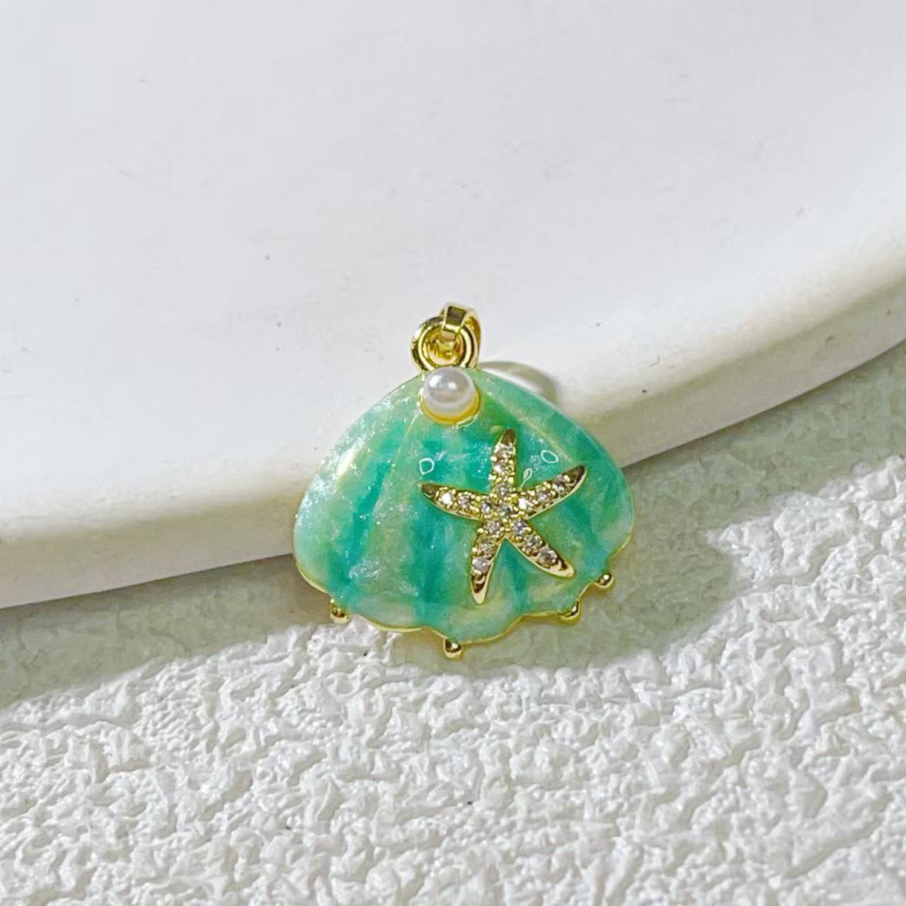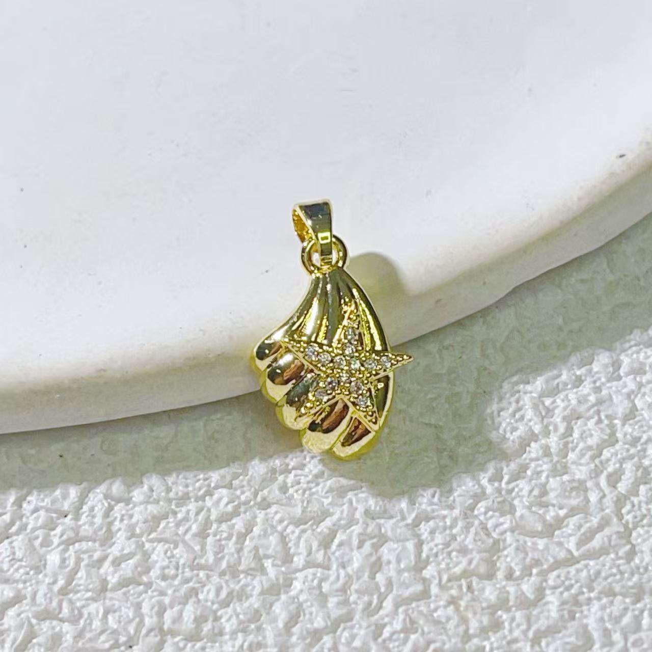 热销新款海洋系列贝海螺海星铜镀真金保色精致小众吊坠配件