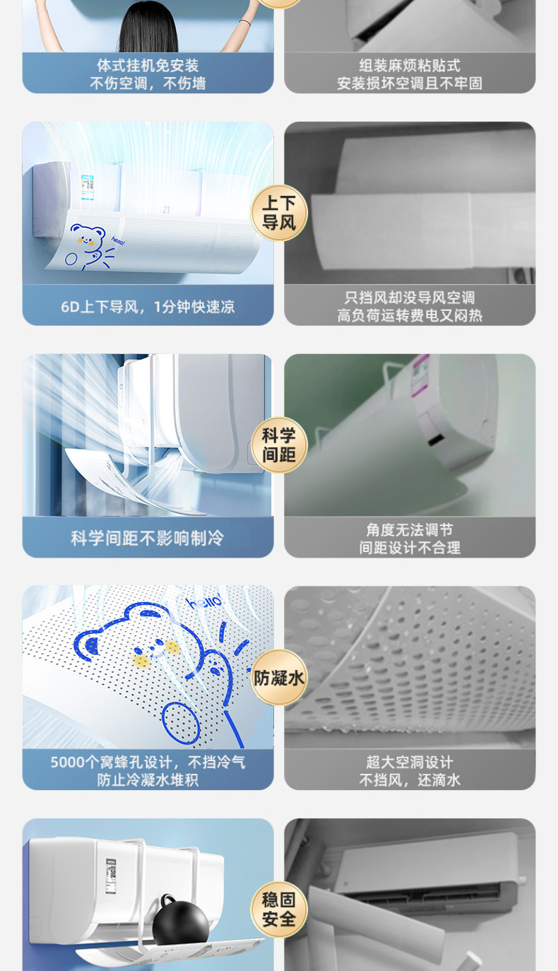 空调挡风板壁挂式可调节婴幼儿月子防直吹导风板免安装遮风板通用