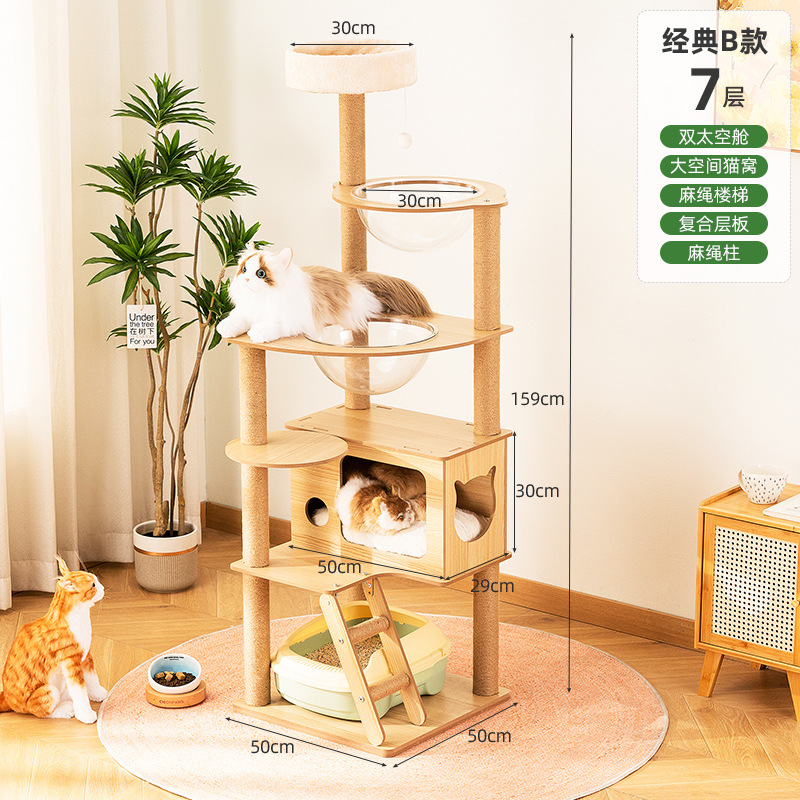 木质猫爬架猫窝猫跳台猫吊桥软梯猫舍猫爬架DIY猫树一体多功能