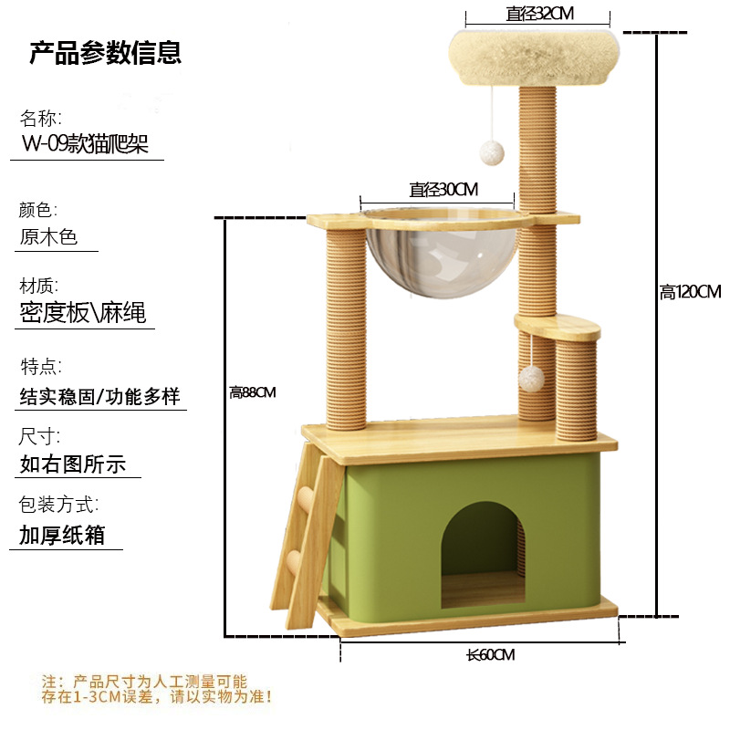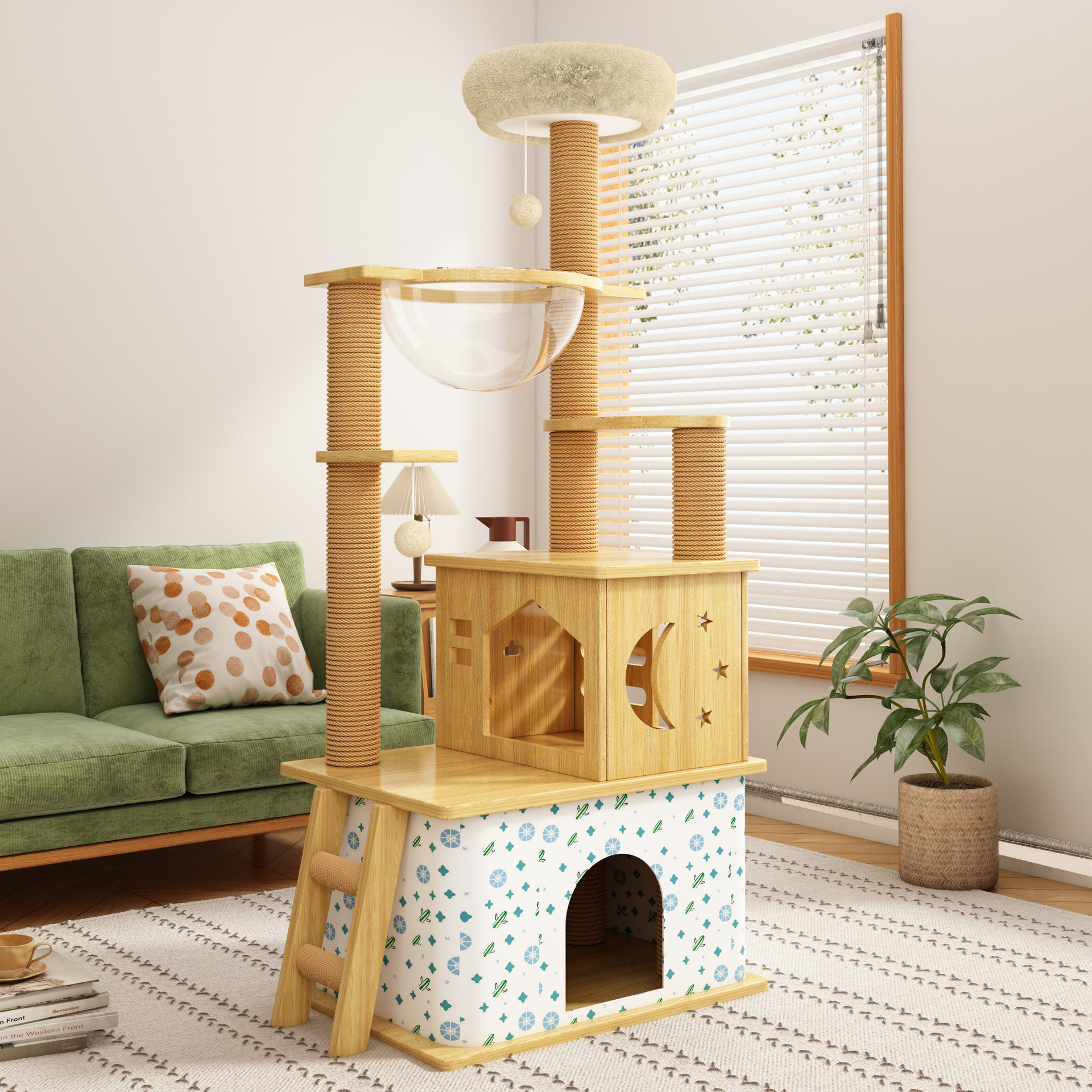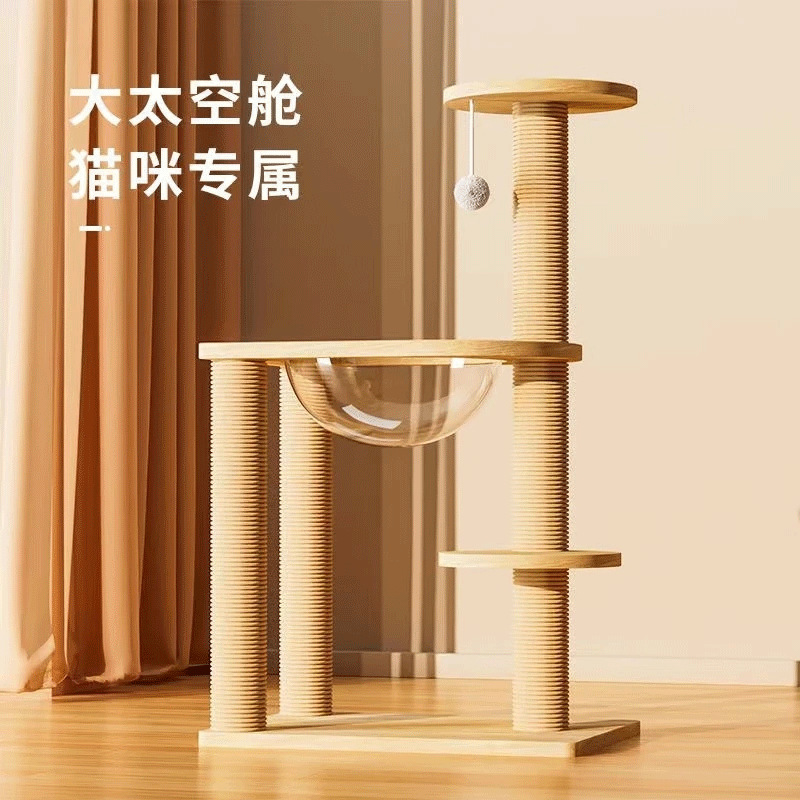 宠物猫爬架实木多层太空舱猫跳台剑麻猫抓柱猫窝一体落地宠物玩具