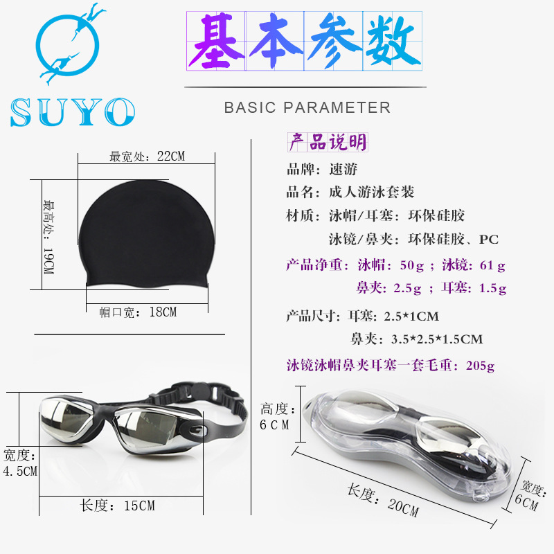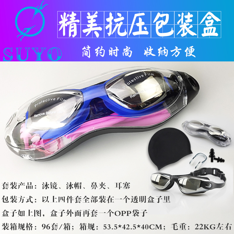 泳镜套装成人游泳镜泳帽防水防雾硅胶泳镜电镀高清游泳眼镜可印刷