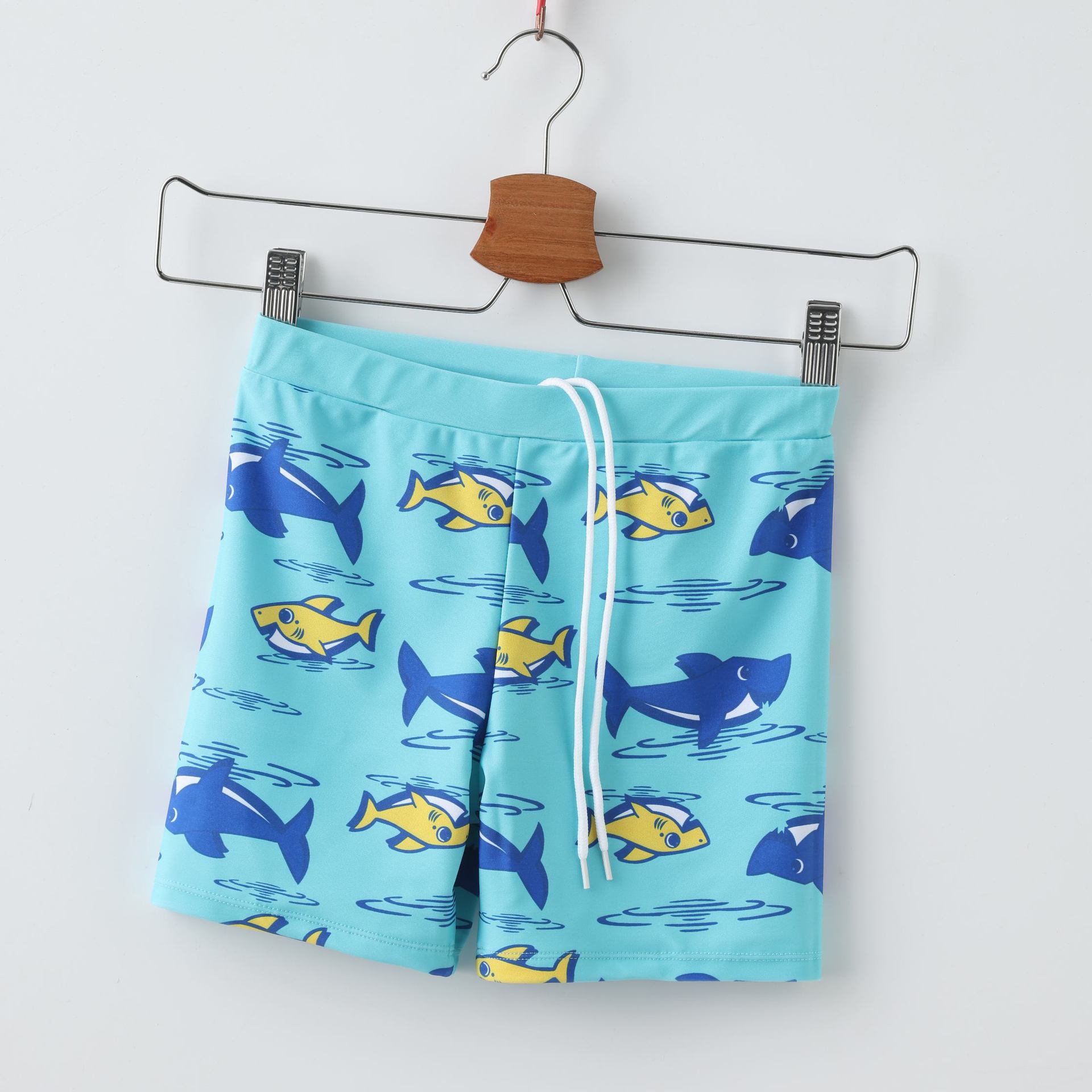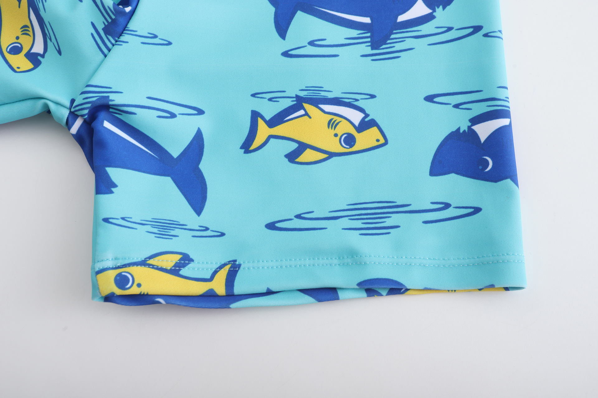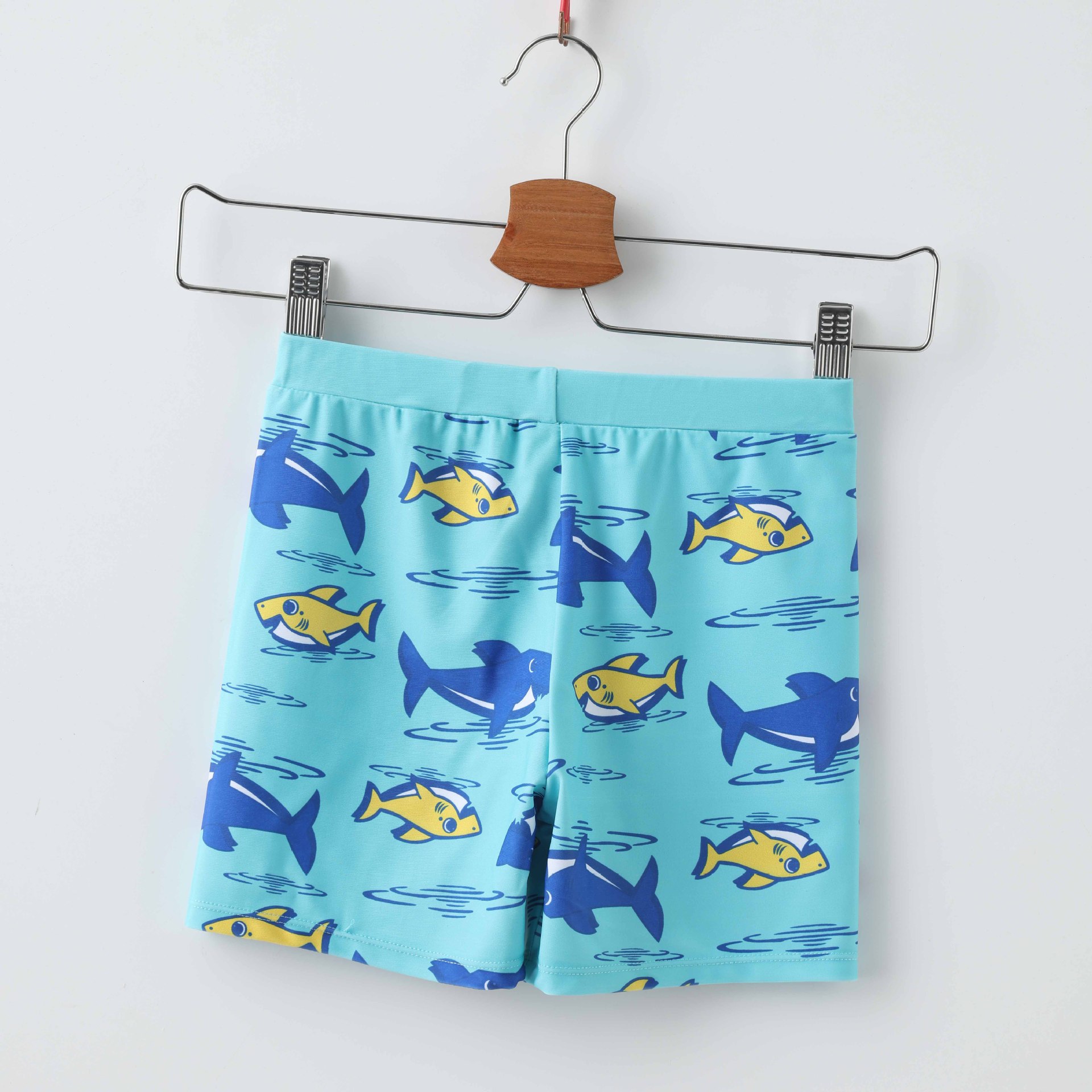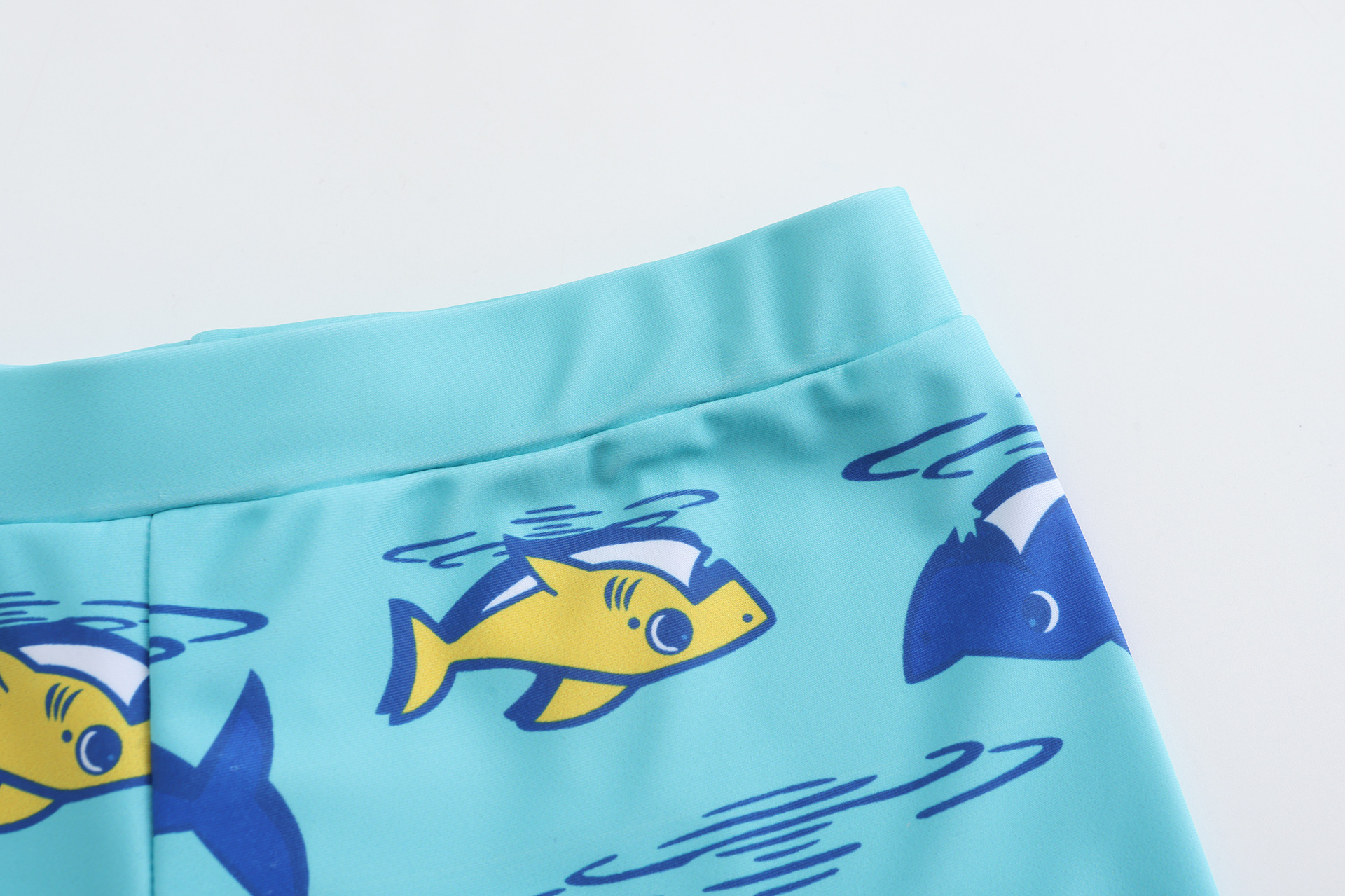 儿童泳裤男童分体带帽泳帽套装卡通带系绳平角男孩子游泳裤批发