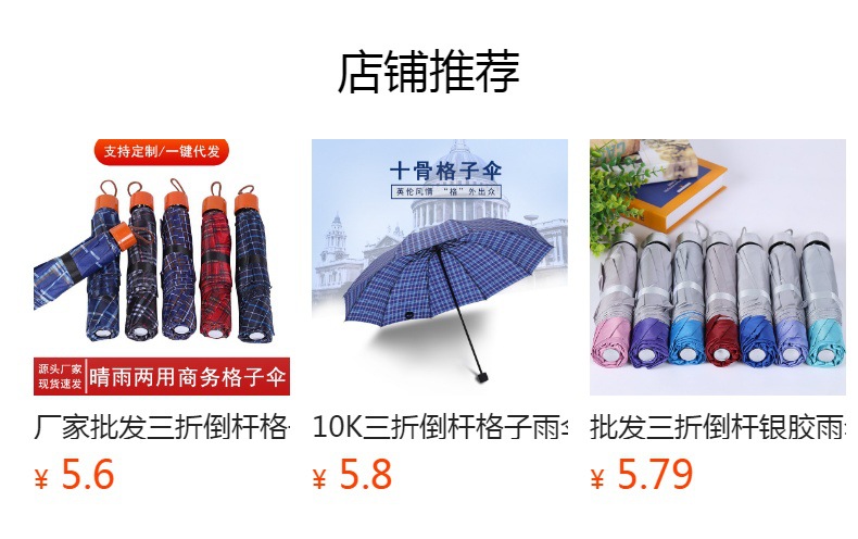 厂家批发10K75加大抗风加固多人三折倒杆格子雨伞商务晴雨伞遮阳