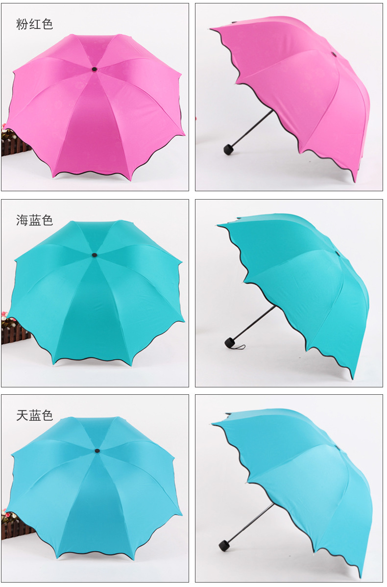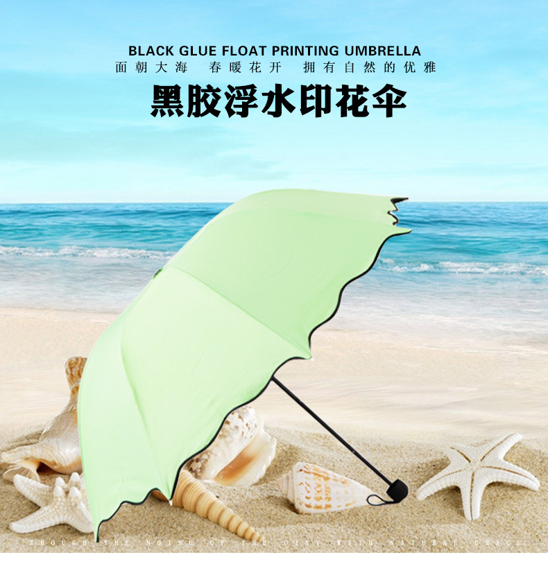 创意遇水开花伞黑胶防晒遮阳太阳伞批发女生手动三折晴雨伞印logo