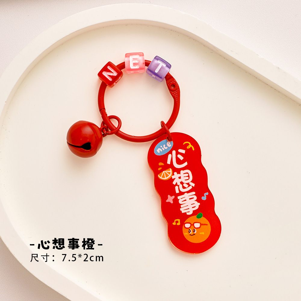 卡通水果文字钥匙扣学生可爱包包铃铛小挂件励志钥匙圈装饰小礼品