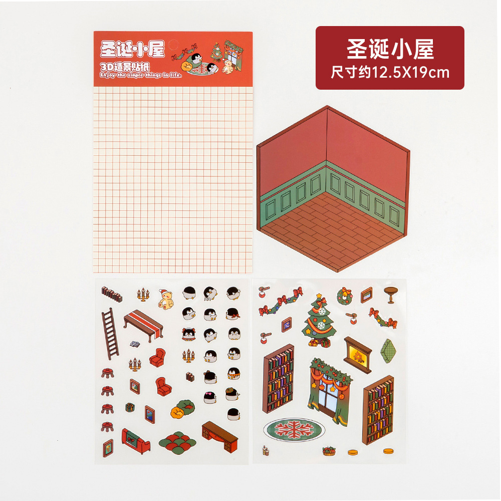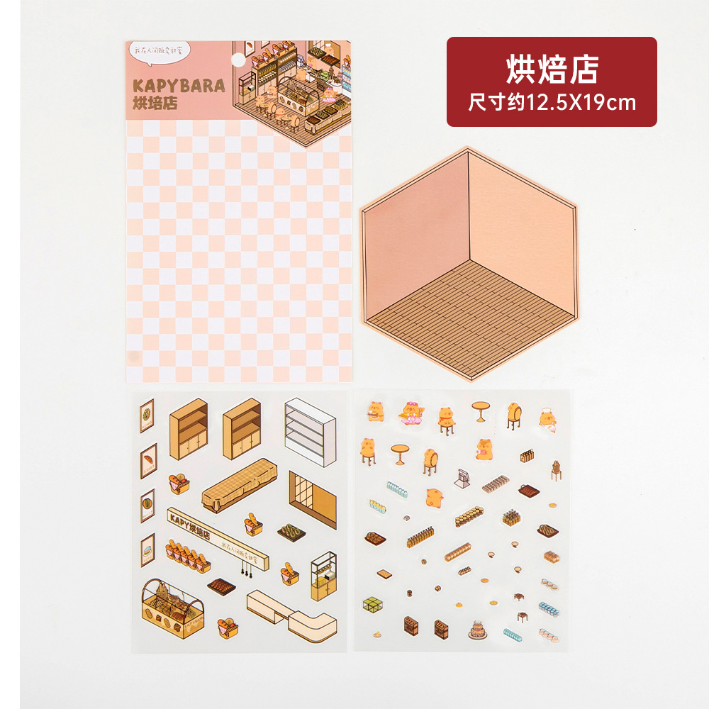 ins卡通微缩场景贴纸 学生可爱3D立体小贴画高颜值手帐造景贴纸