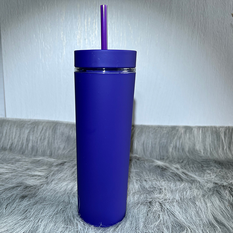 跨境批发亚马逊双层磨砂直筒杯时尚ins风高颜值吸管杯网红高级感