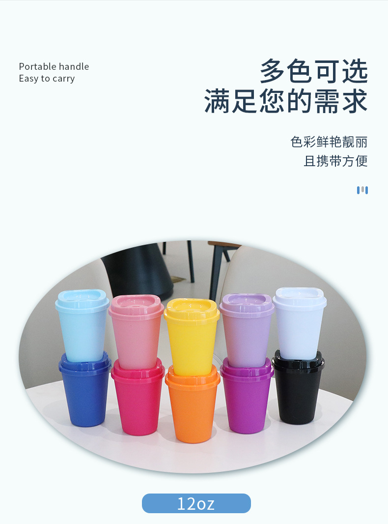 跨境热销创意小容量彩色12OZ咖啡杯PP材质塑料饮料杯可印Logo批发