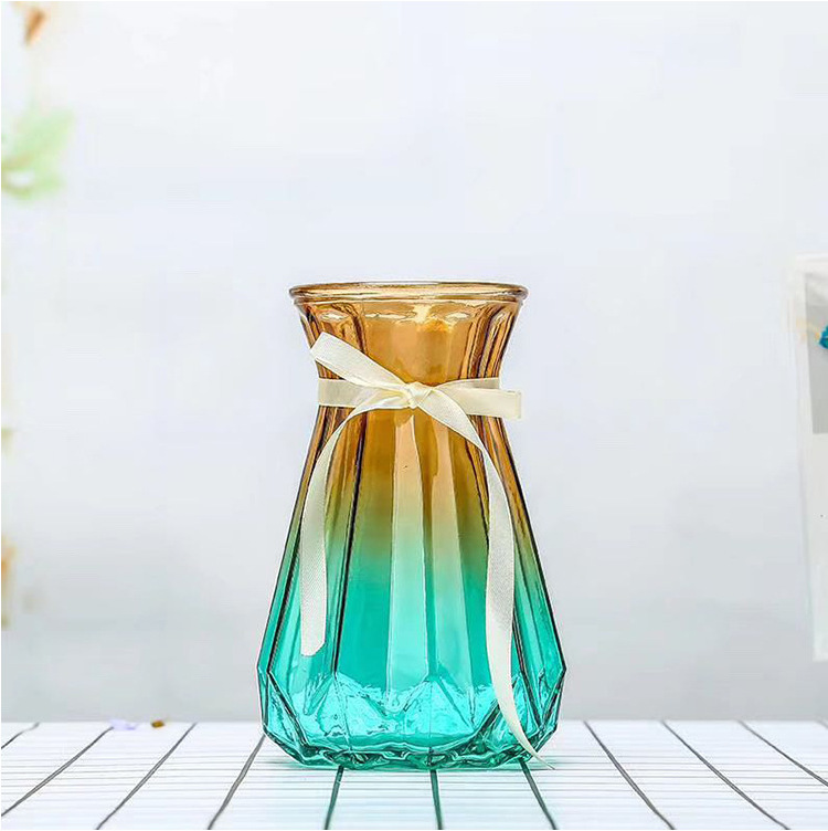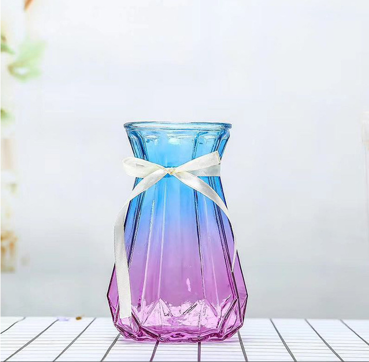 创意欧式玻璃花瓶透明彩色插花客厅桌面摆件水培花瓶现代简约风格