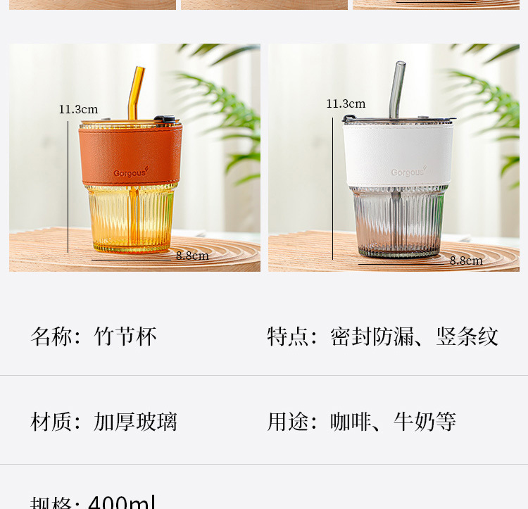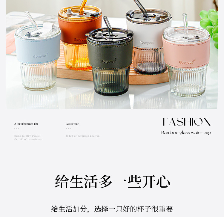 创意水杯新款条纹竹节杯隔热玻璃杯高颜值家用办公室咖啡杯子logo