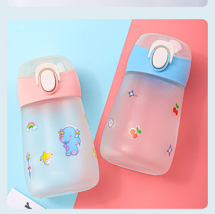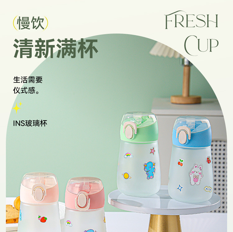 儿童可爱水杯少女吸管杯小学生便携玻璃杯办公室家用卡通贴纸杯子