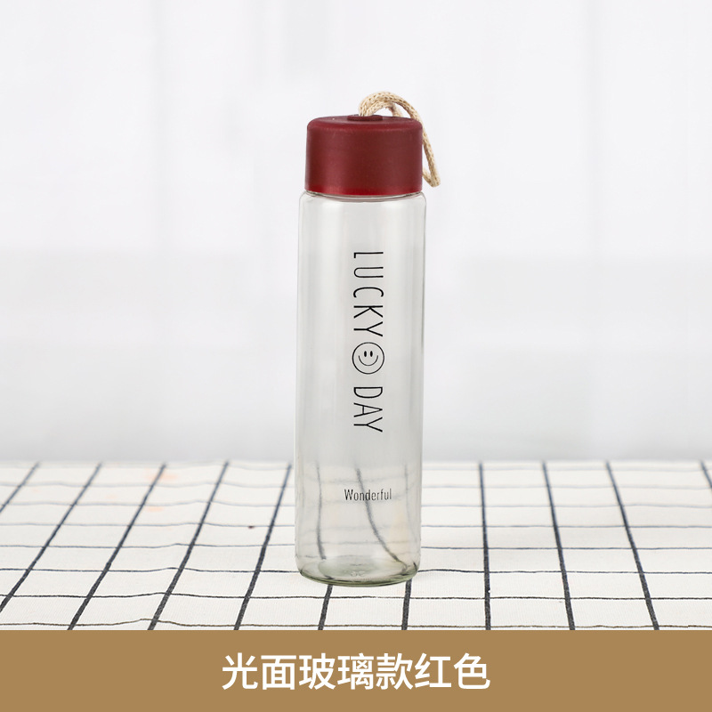 麻绳杯磨砂随手杯子便携提绳字母水杯广告杯玻璃水杯印写logo