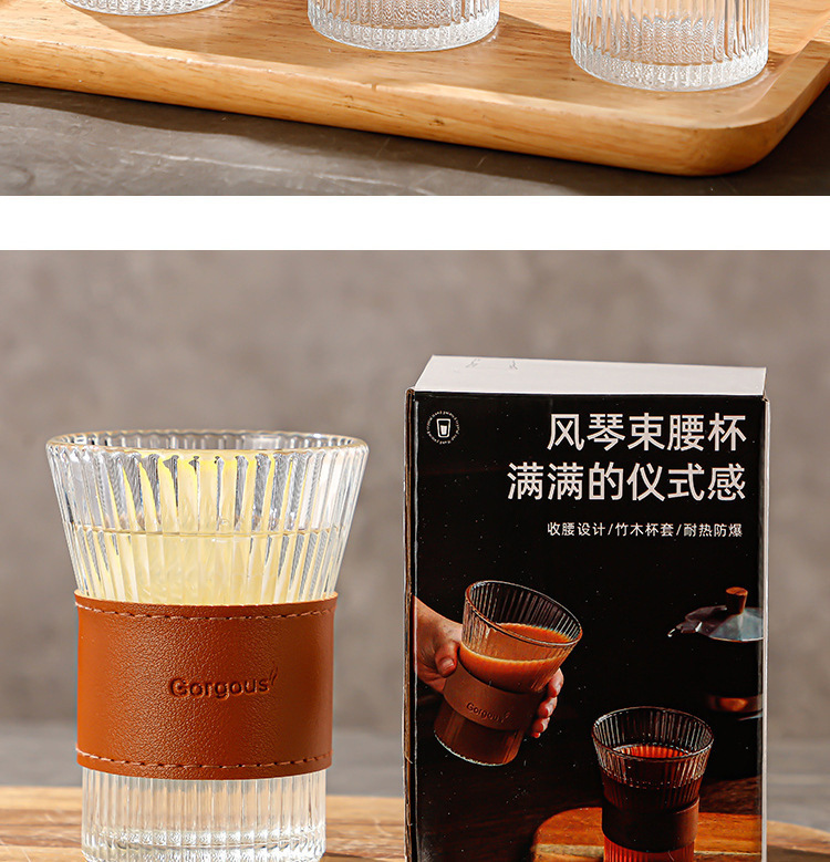 隔热束腰风琴杯创意杯套玻璃杯网红透明ins水杯日式家用咖啡杯
