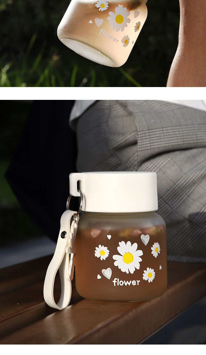 简约便携玻璃雏菊杯日式家用水杯办公室泡茶杯300ml蒙砂杯子批发