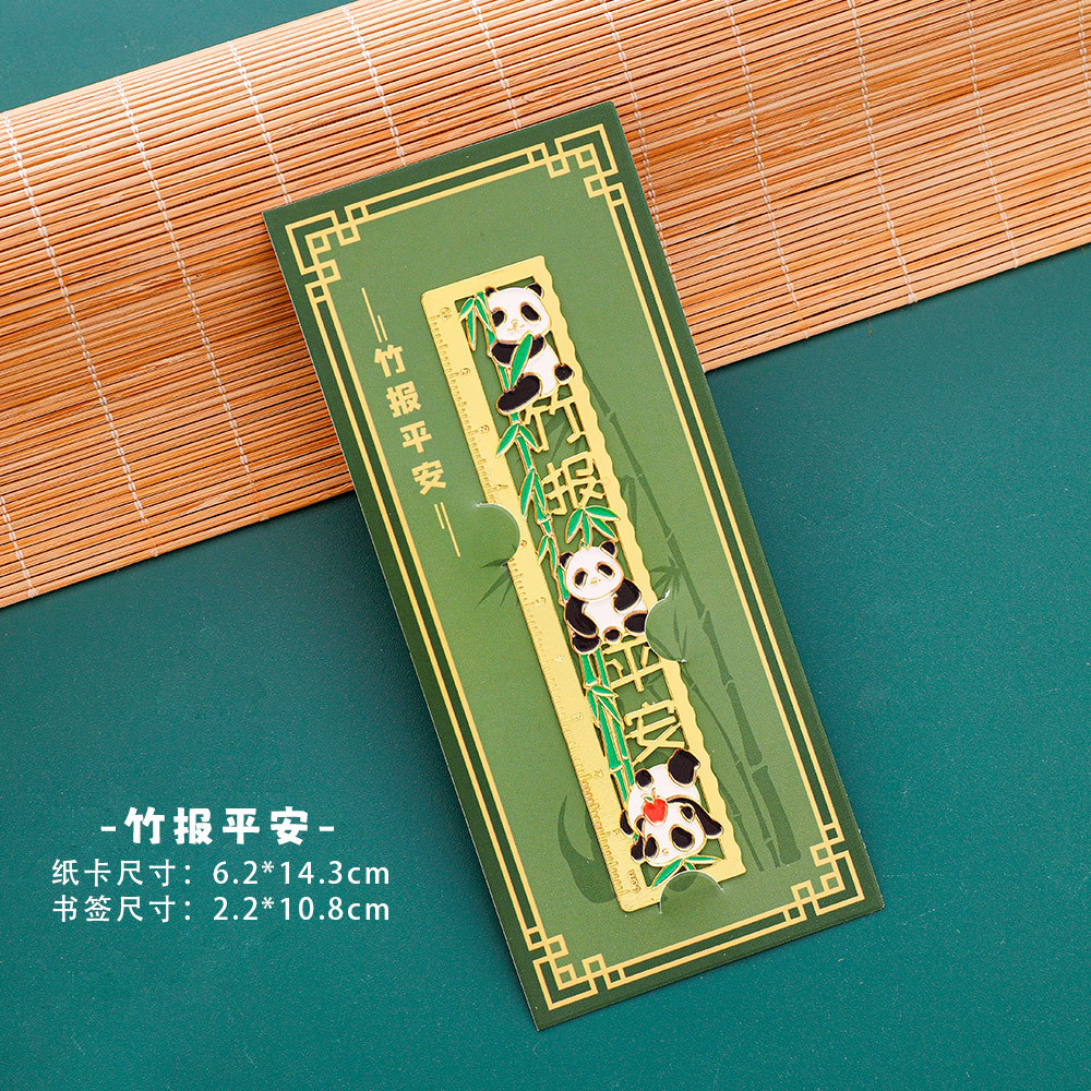 可爱熊猫金属书签尺 学生多功能直尺卡通高级感励志文字书签礼品
