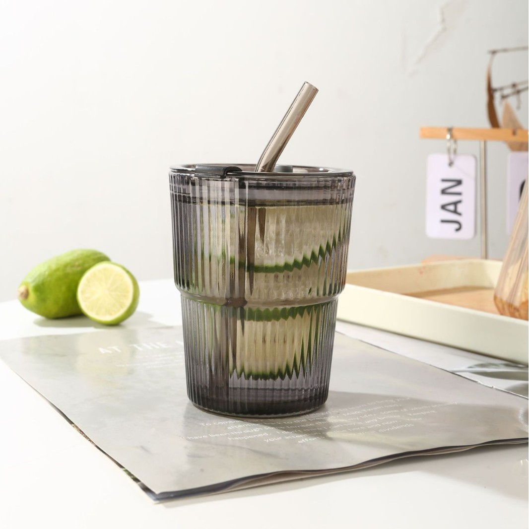网红竖条纹竹节杯咖啡拿铁杯ins风高颜值吸管饮料礼品玻璃水杯子