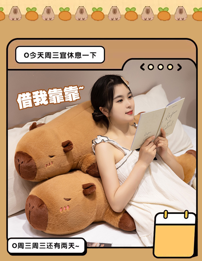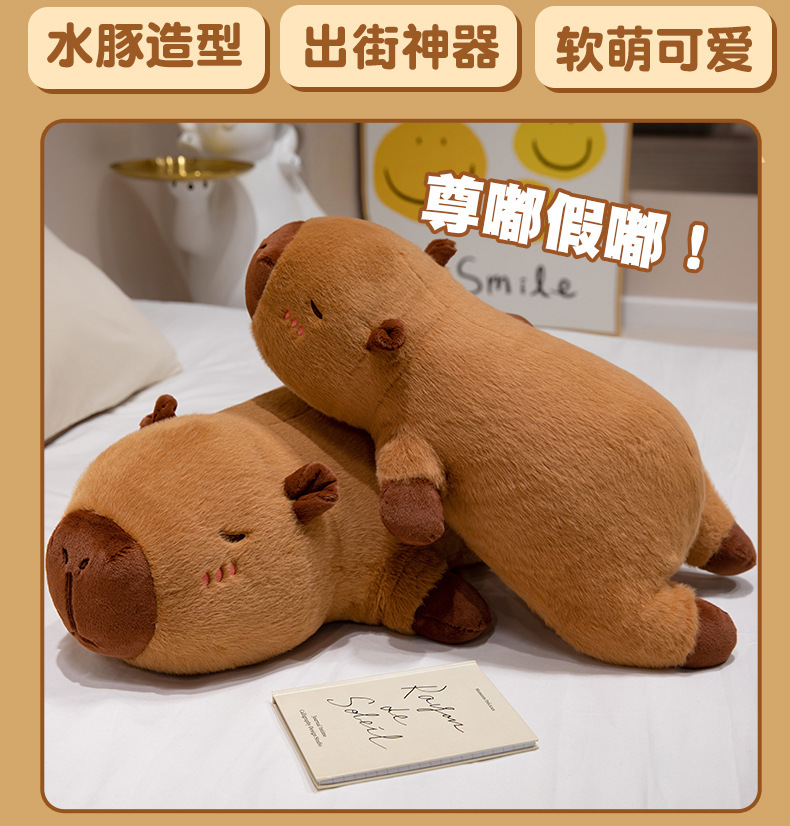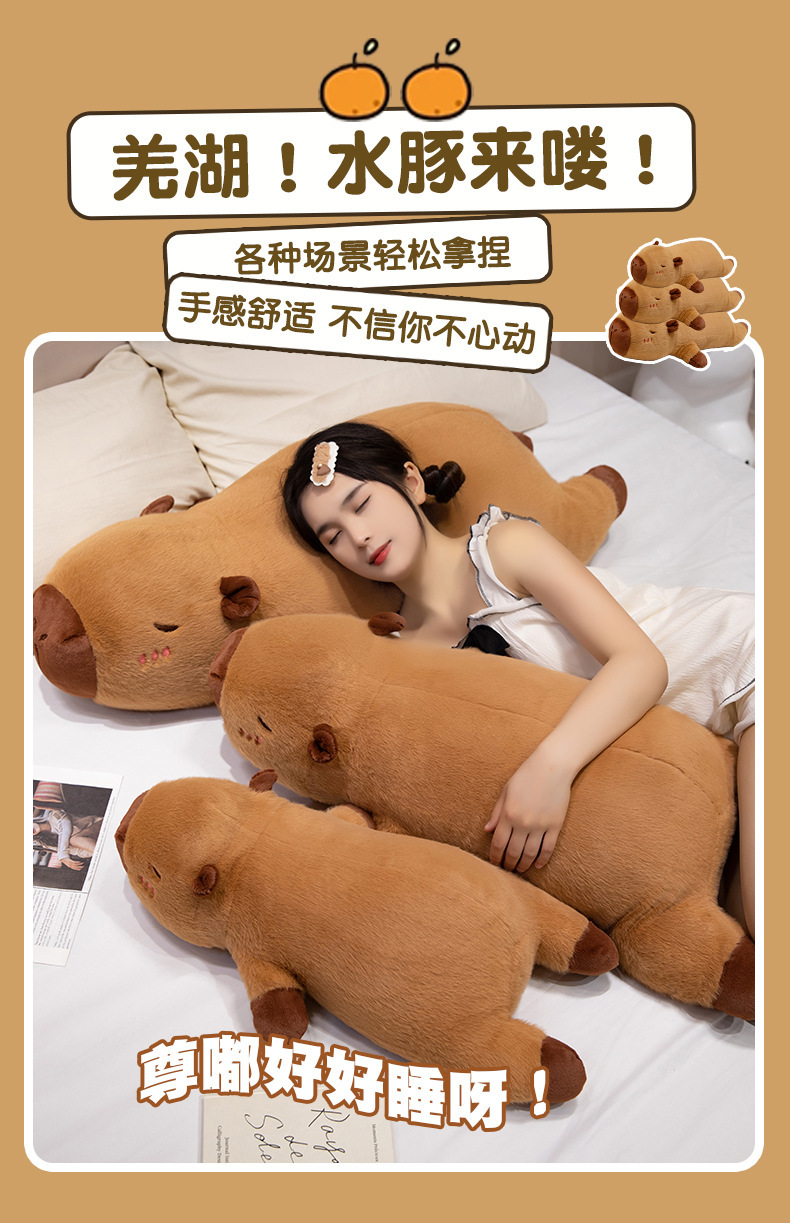 趴款水豚卡皮巴拉抱枕女生睡觉床上抱睡公仔长条枕毛绒玩具布娃娃