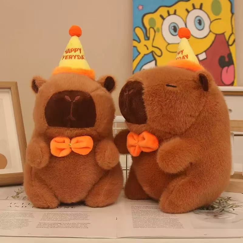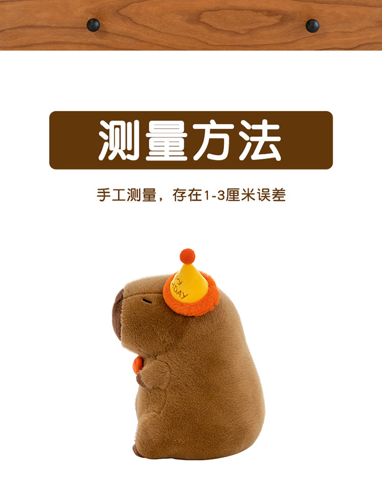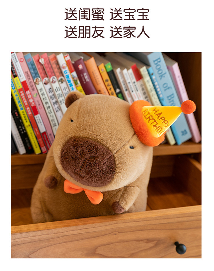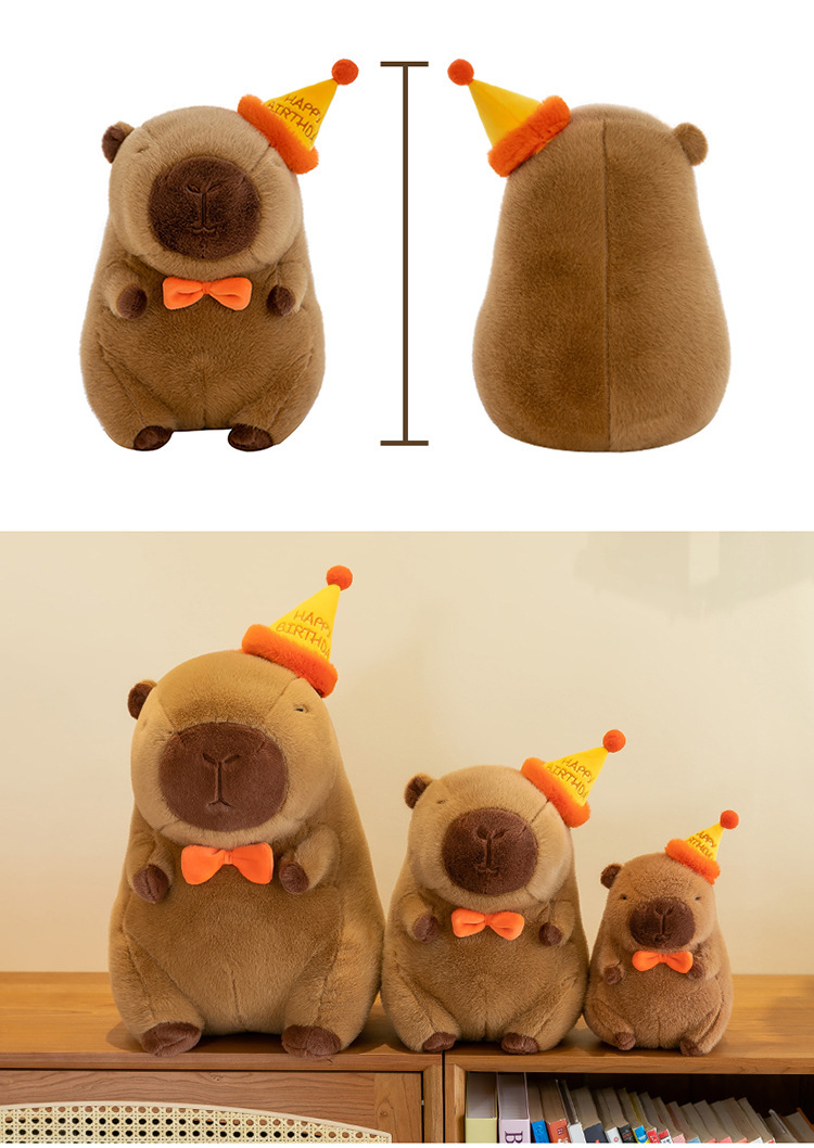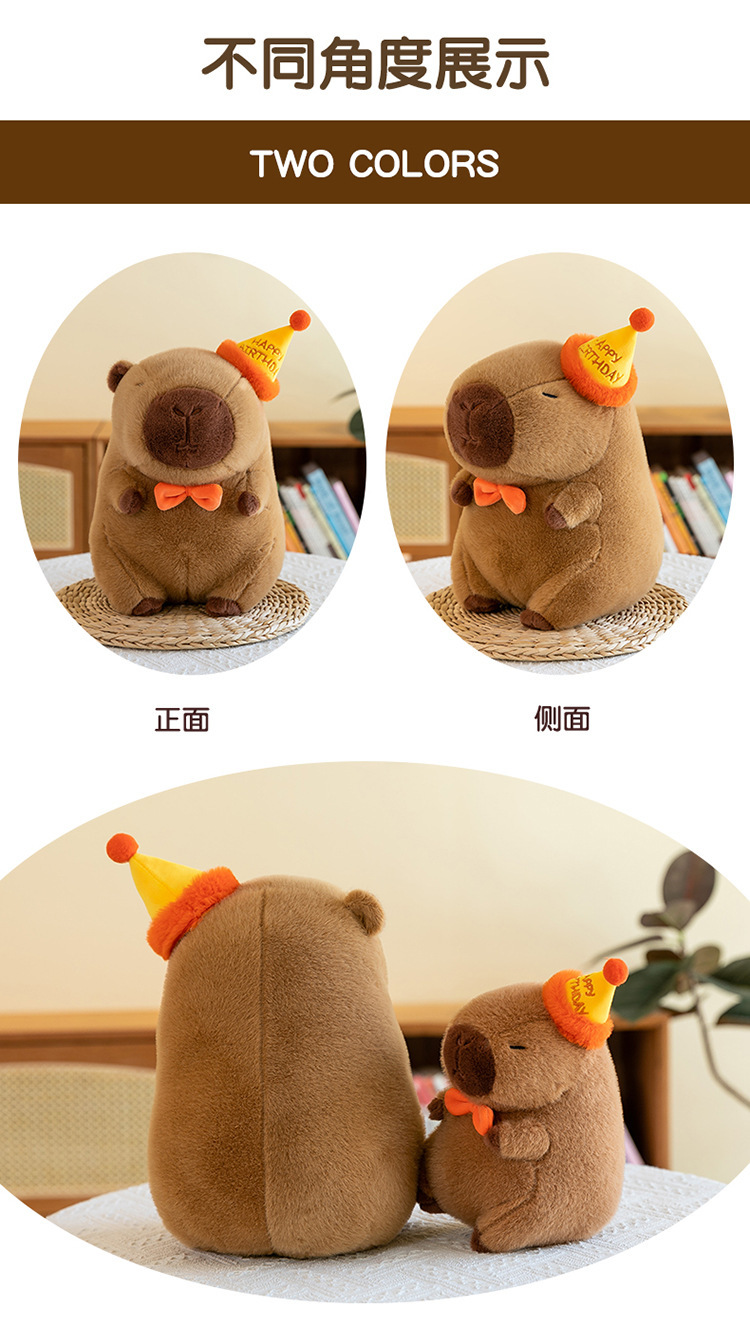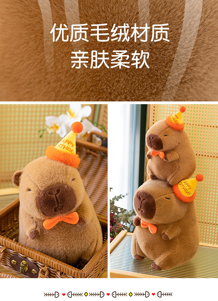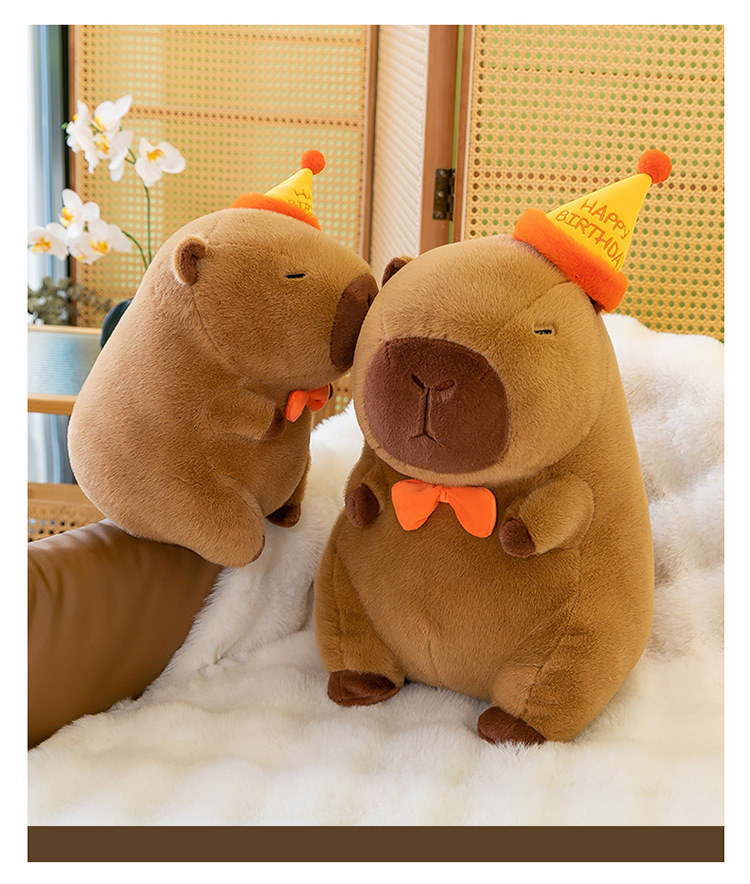 网红卡皮巴拉毛绒玩具公仔可爱生日帽水豚跨境玩偶活动礼品布娃娃