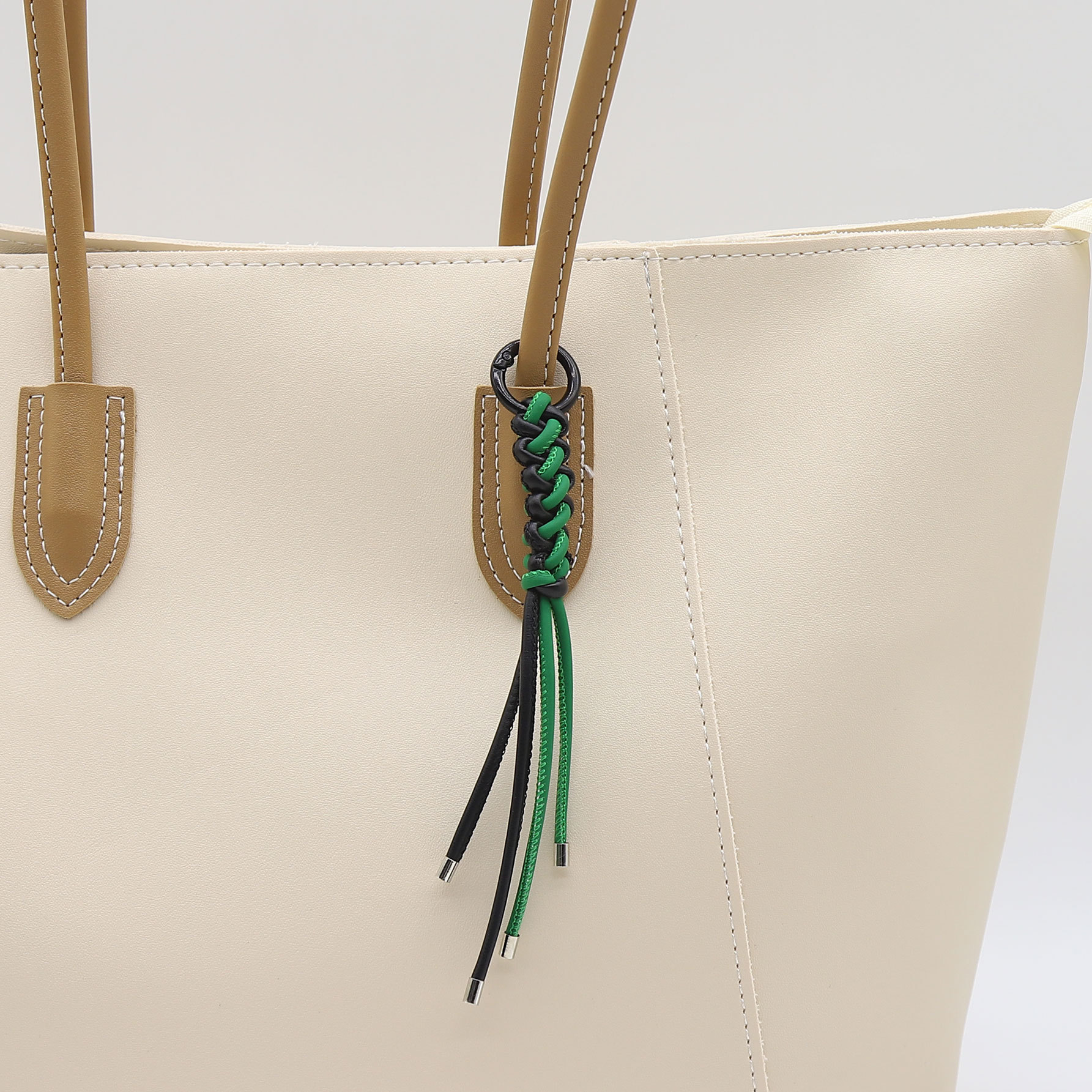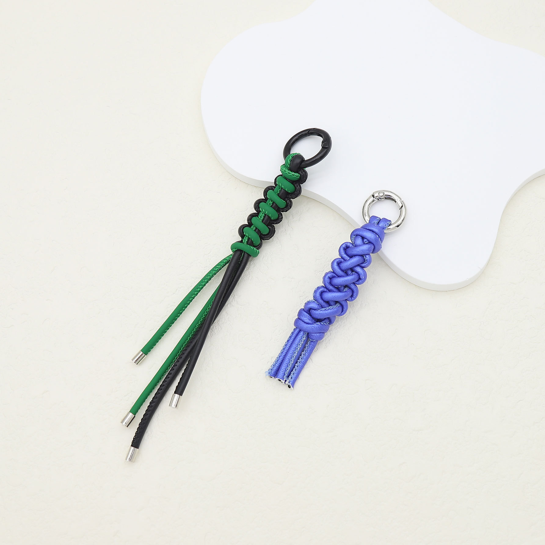 新款可定制纯手工编织双色PU车线绳钥匙扣包包挂件饰品批发亚马逊