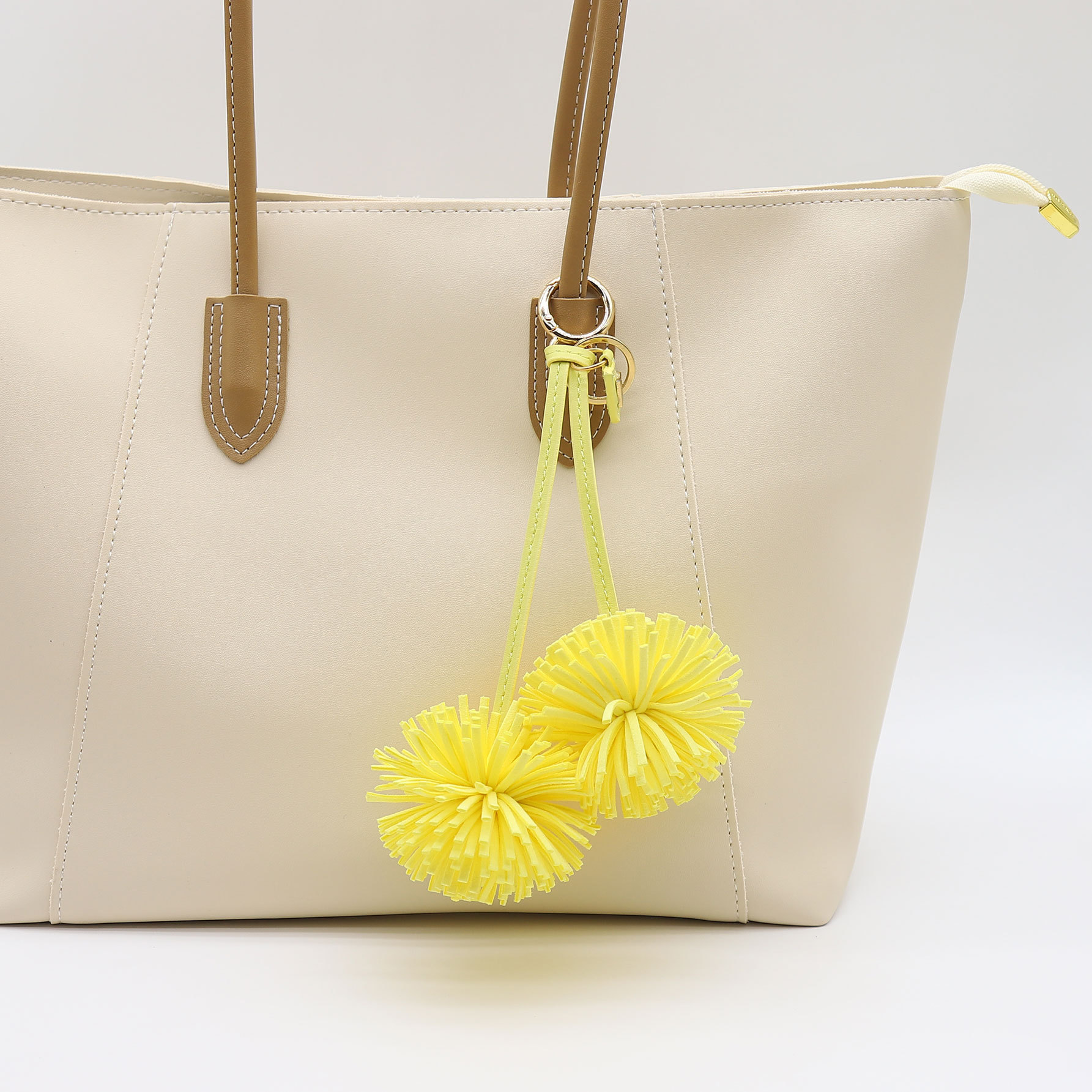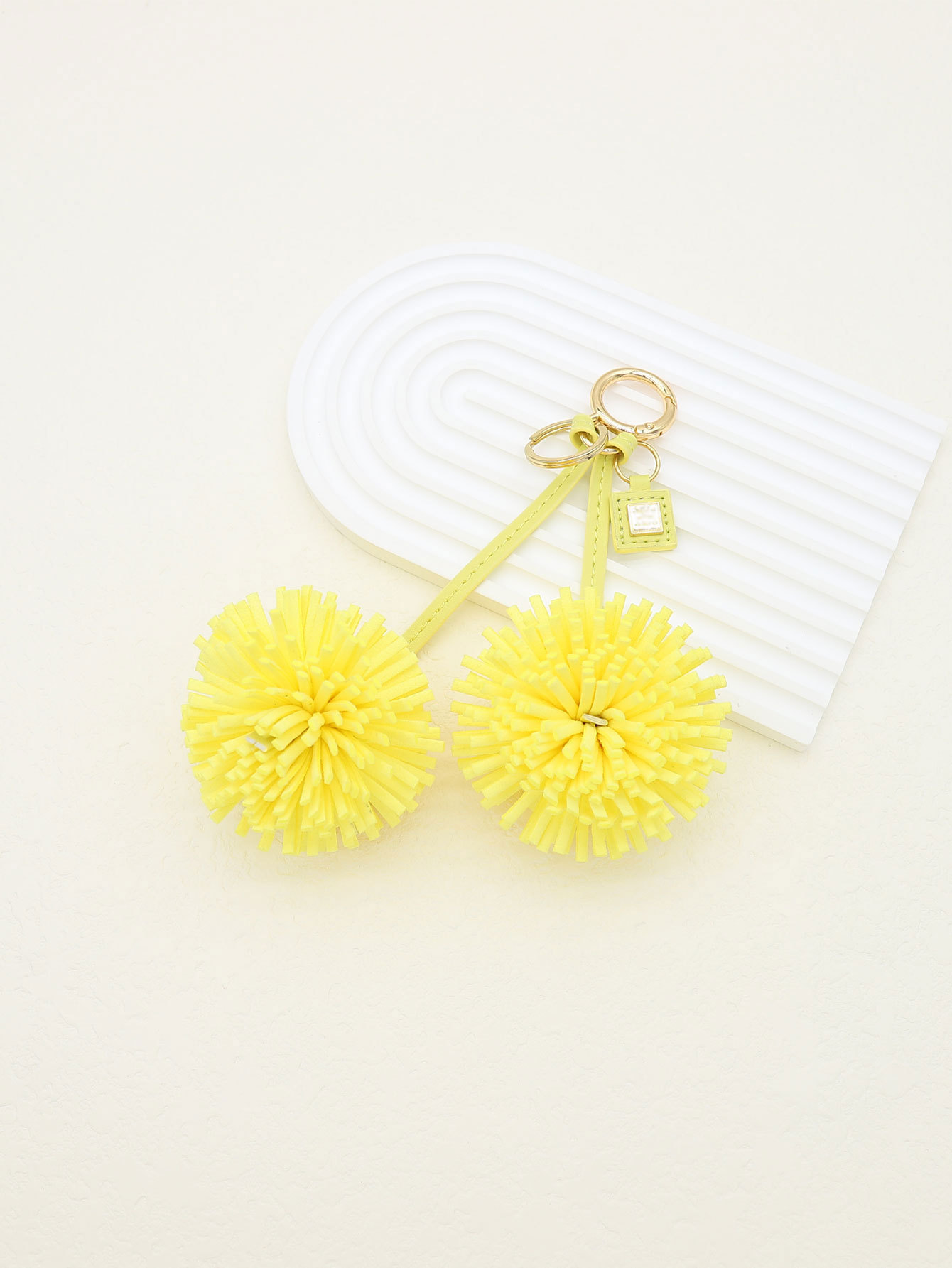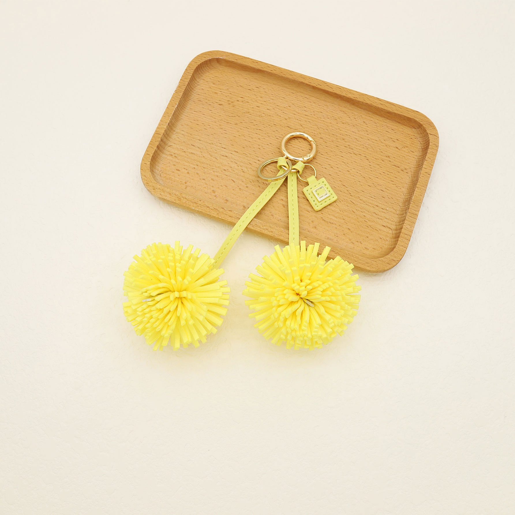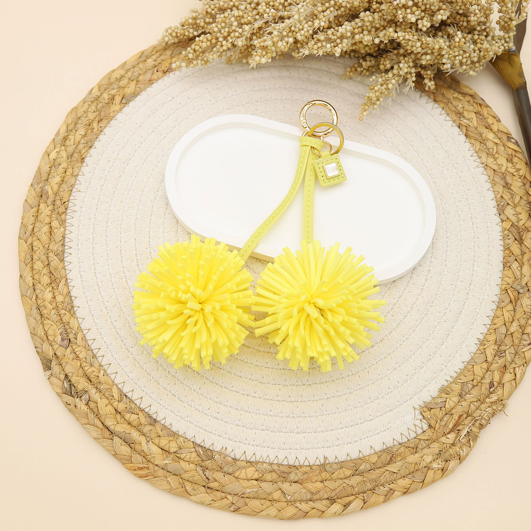customizable color advanced double flower tassel flowers pu leather keychain bag accessory ornament logo embossing