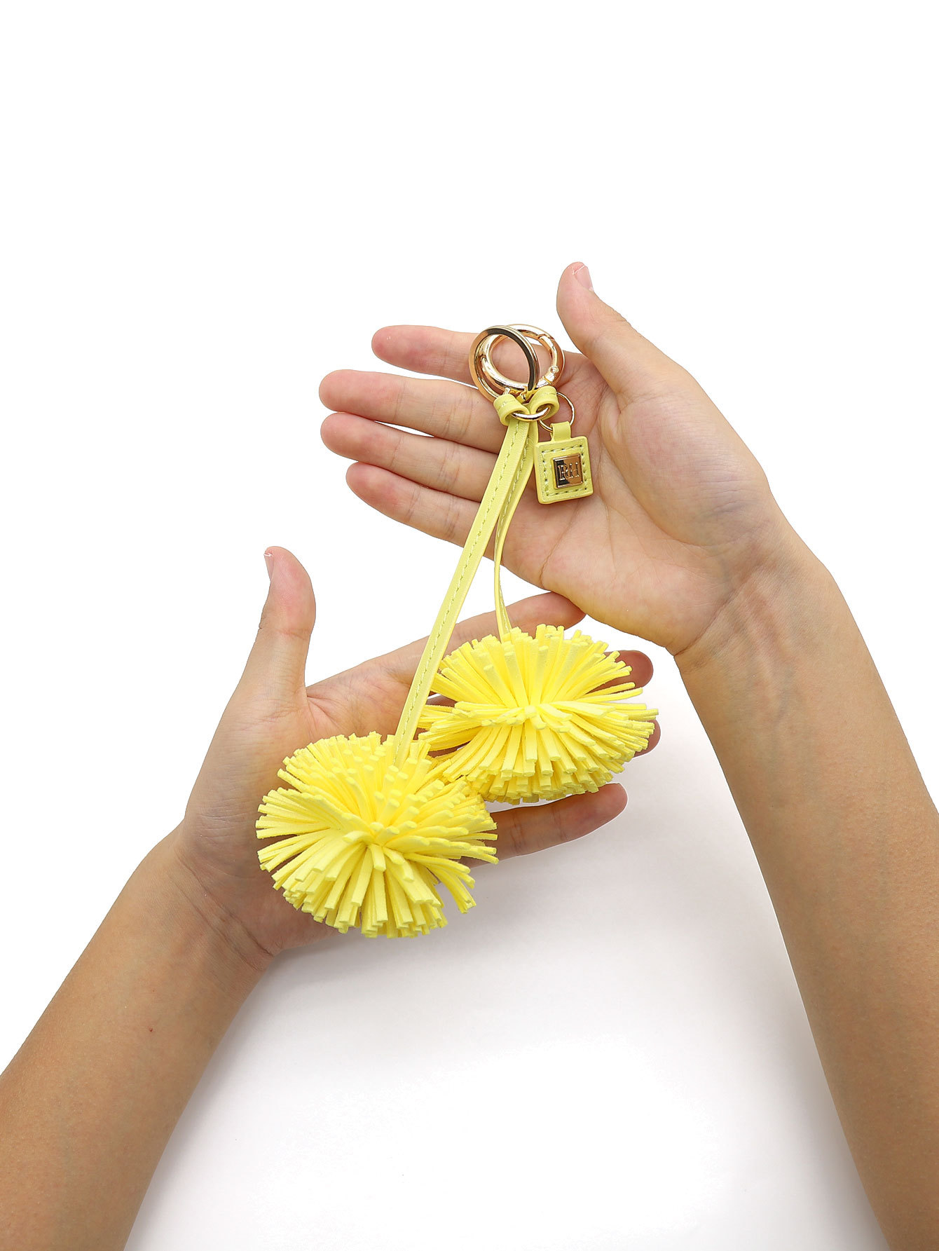 可定制颜色高级双朵流苏花朵PU皮质钥匙扣包包挂件饰品logo压印