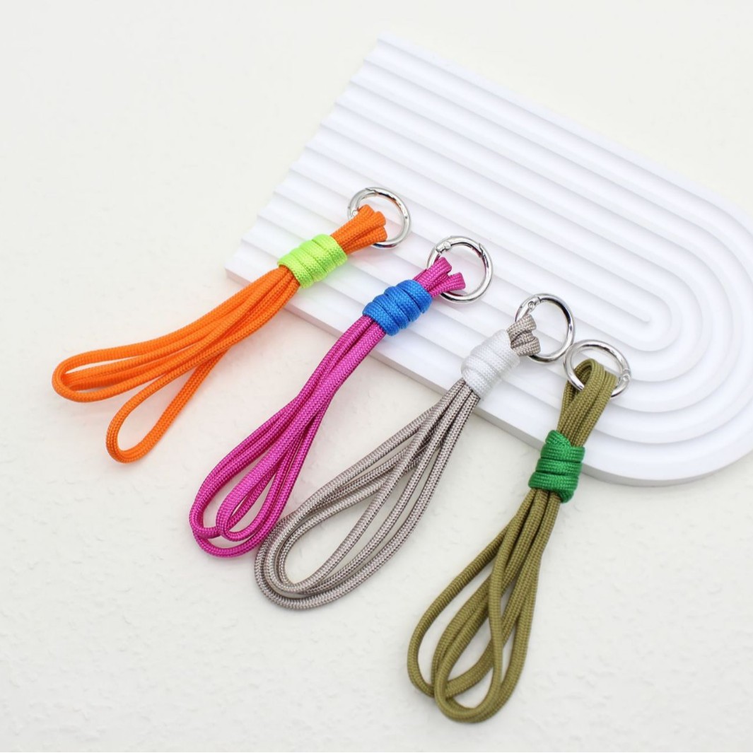 新款简约DIY多色涤纶纯手工编织钥匙扣包包挂件挂饰批发跨境