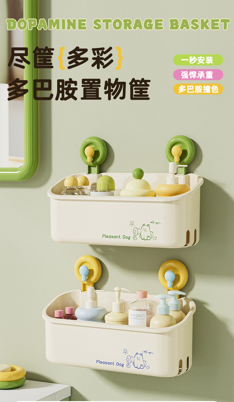 多巴胺吸盘置物架免打孔塑料浴室大号置物筐杂物大容量深口收纳架