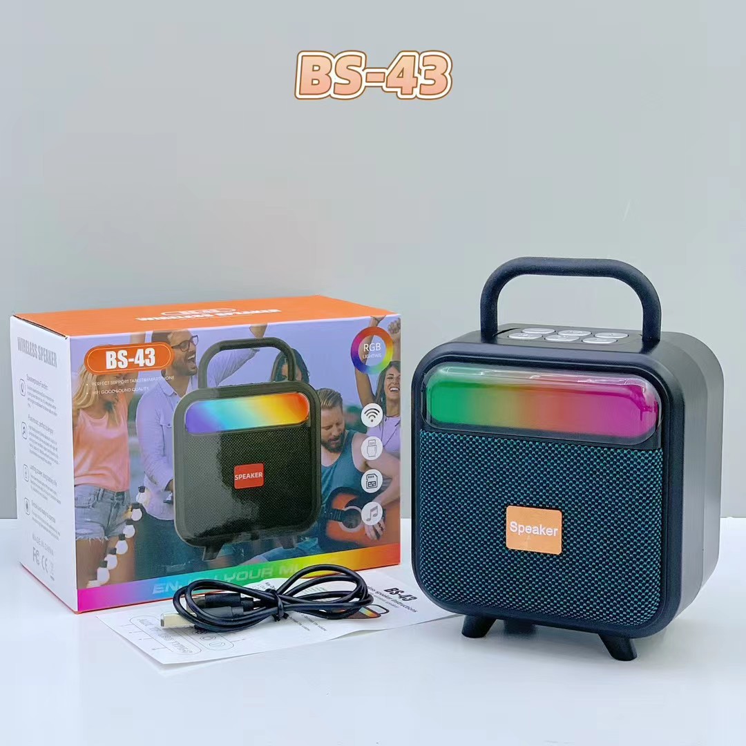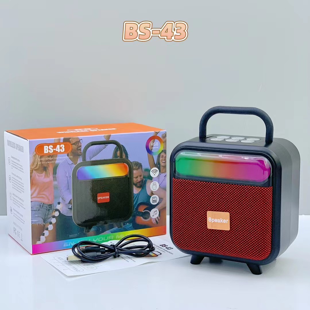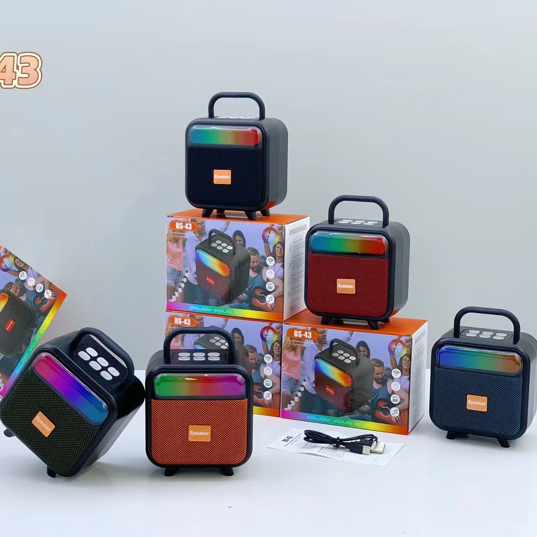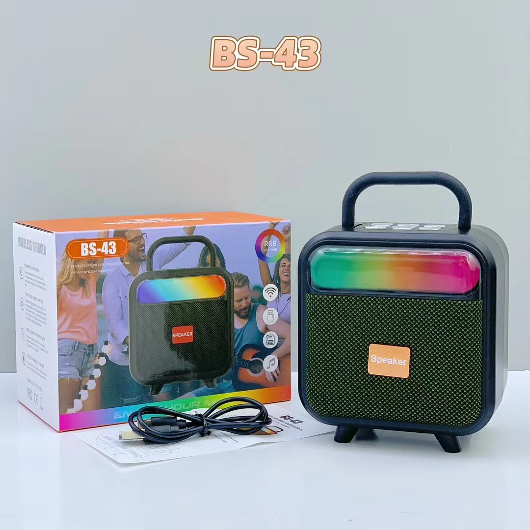 BS-43 跨境新款手提RGB无线蓝牙音响便携式布网桌面迷你插卡音箱