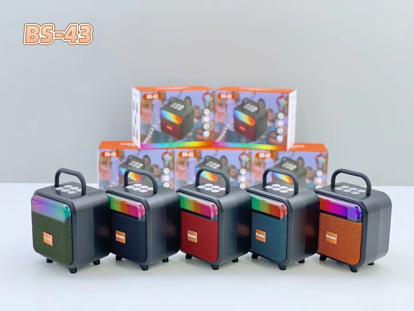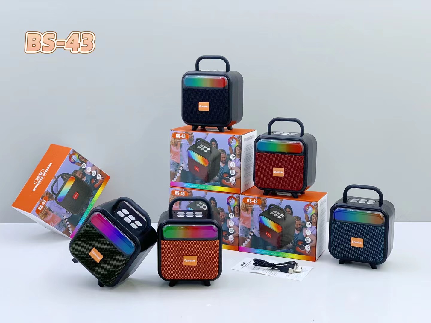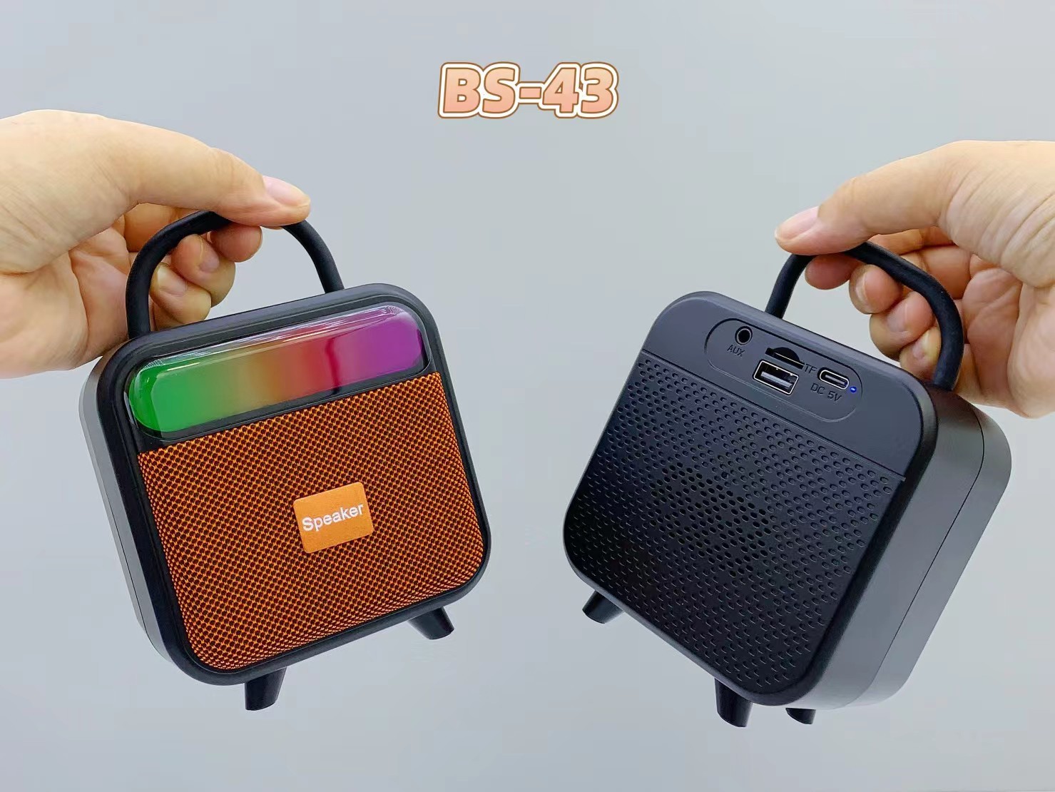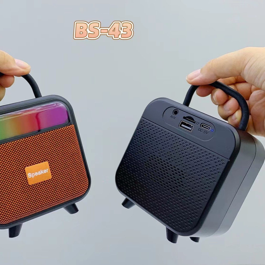 BS-43 跨境新款手提RGB无线蓝牙音响便携式布网桌面迷你插卡音箱