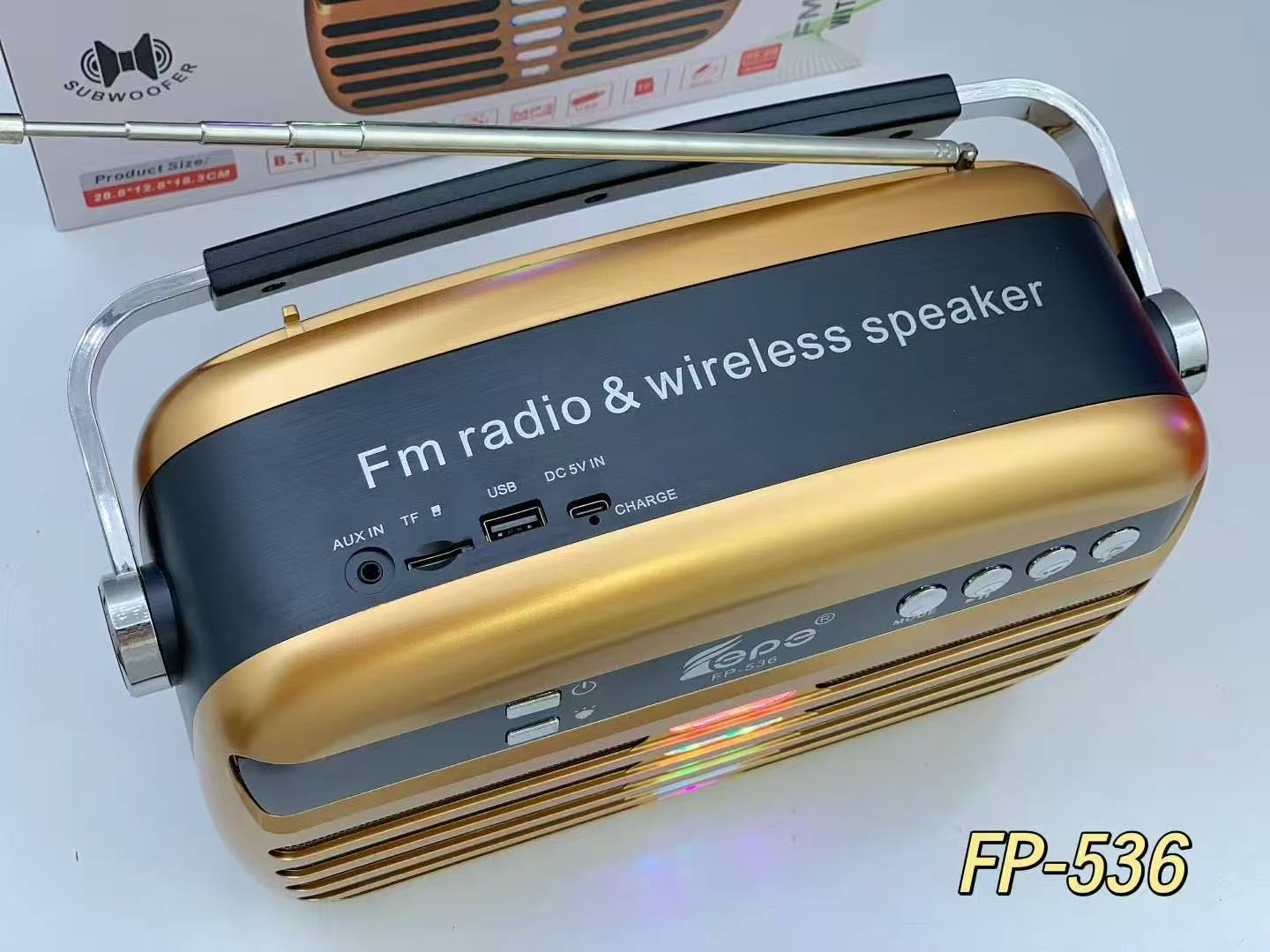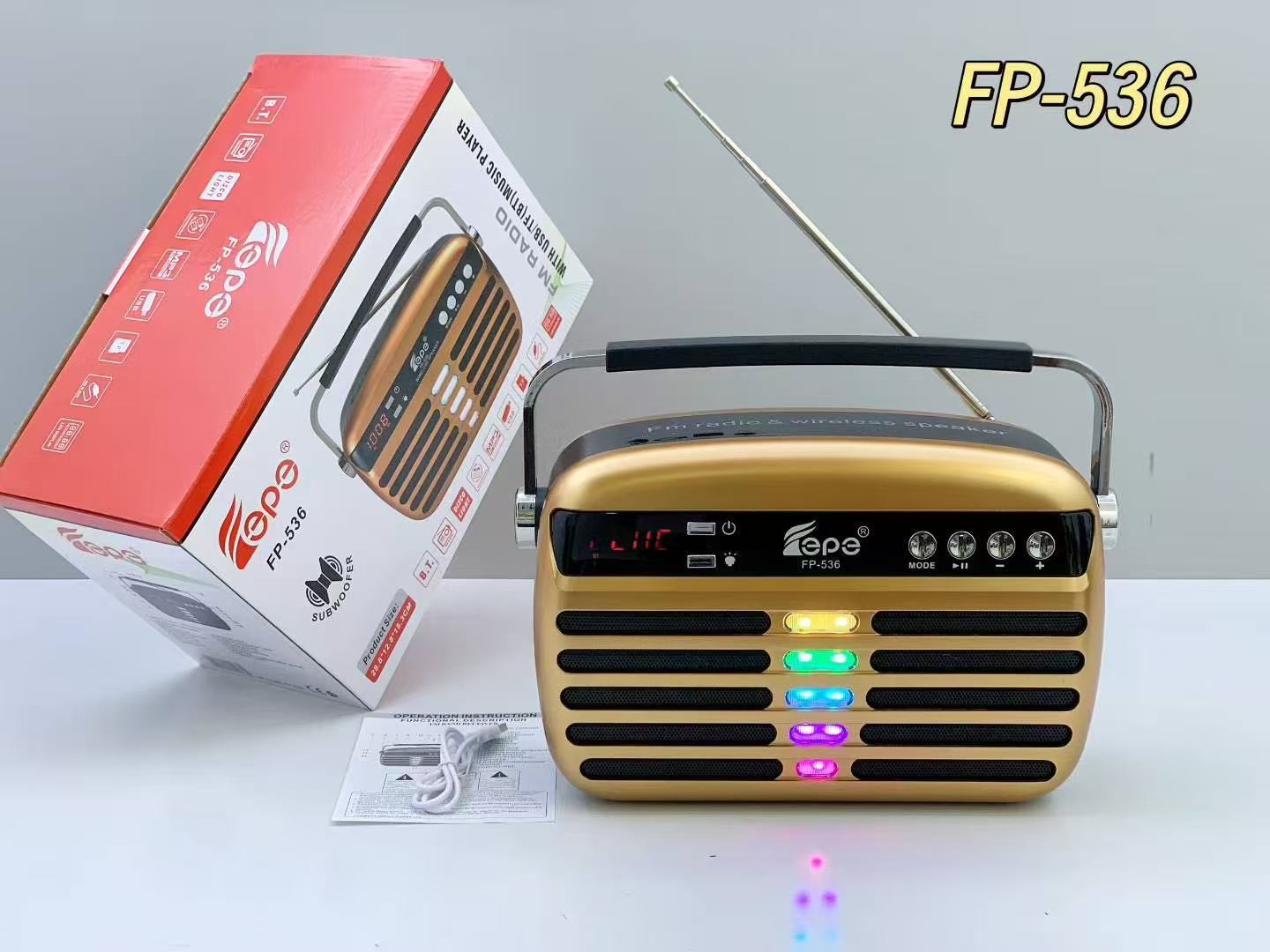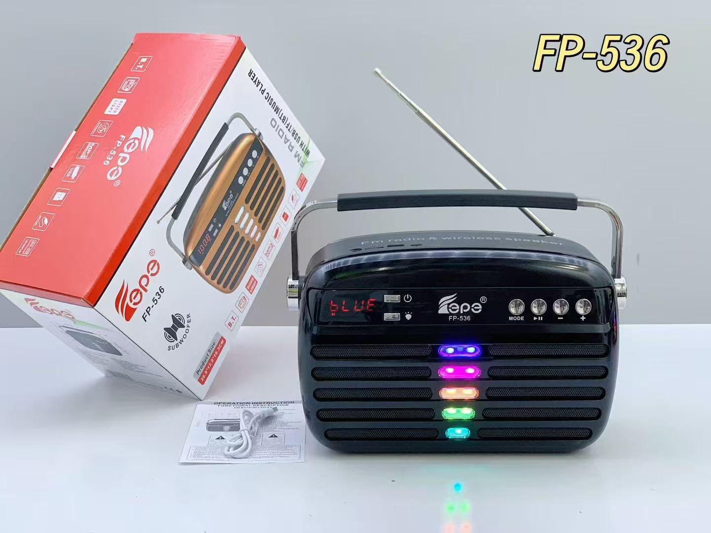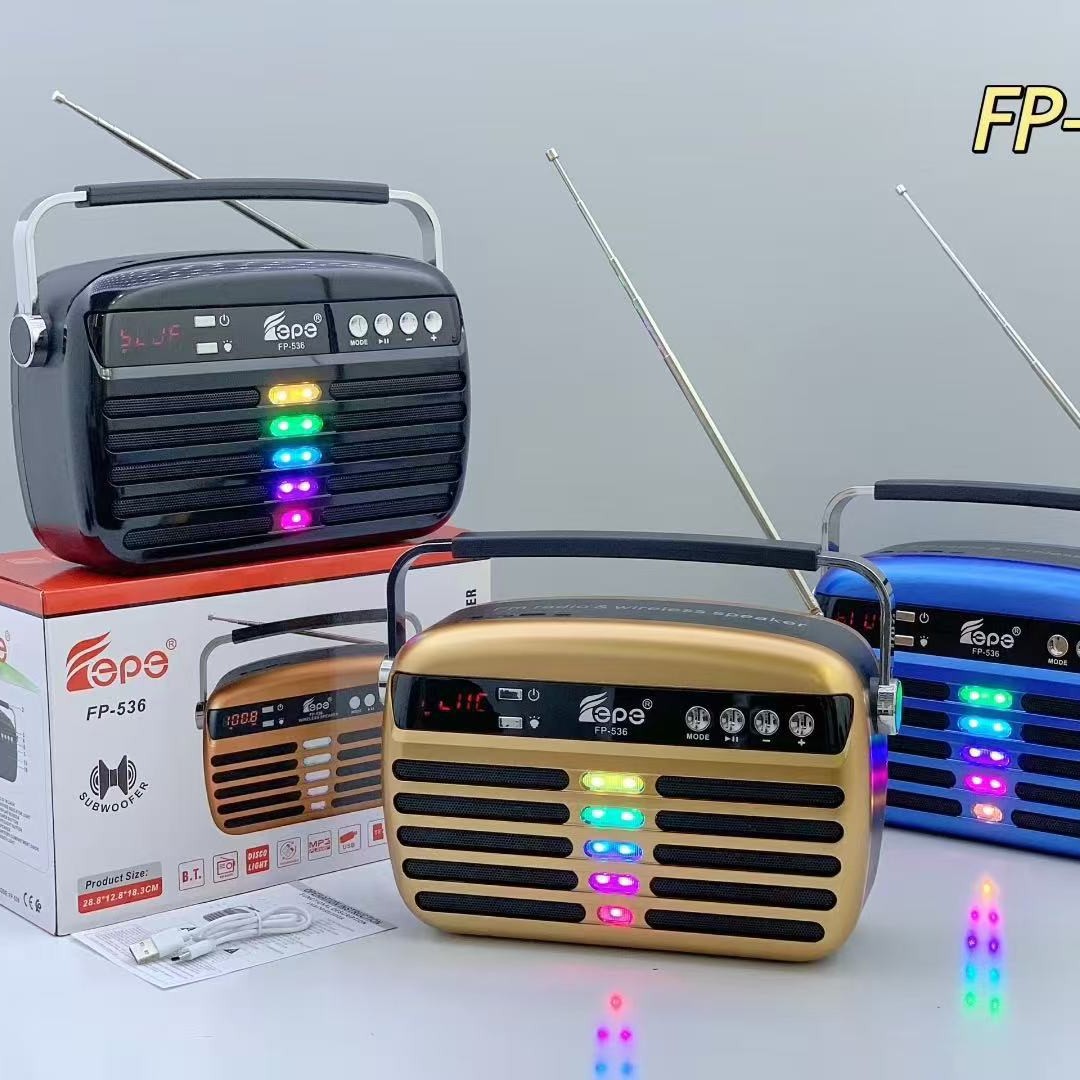 FP-536 跨境蓝牙音箱便携手提家用LED显示屏户外低音炮天线收音机